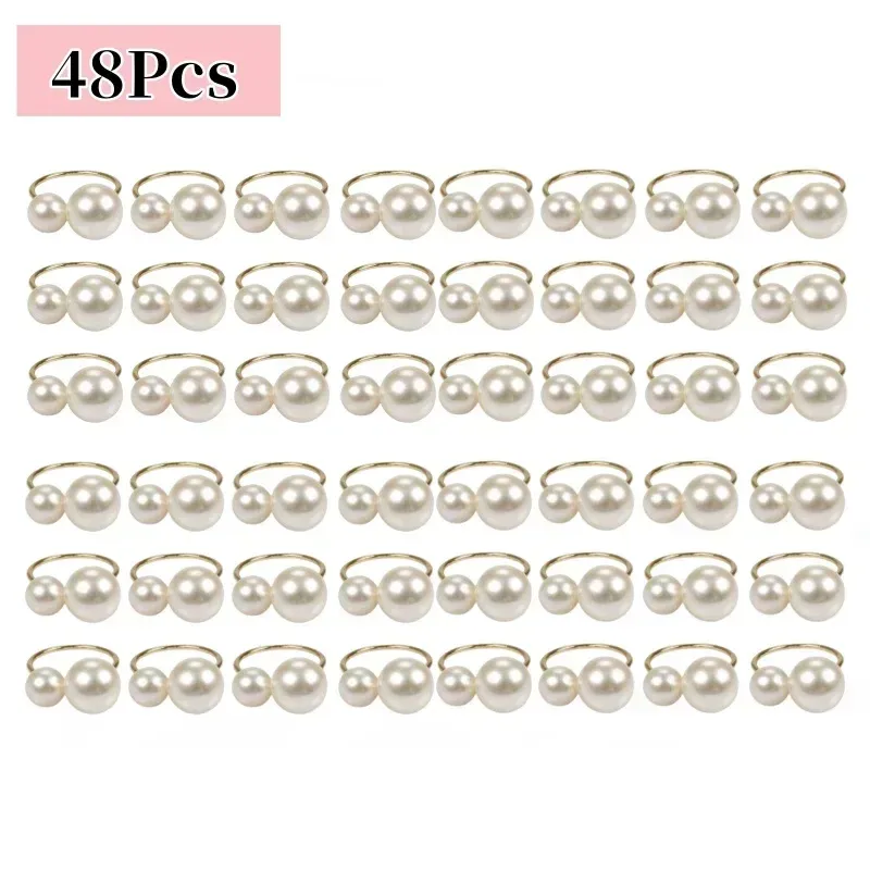 1-96Pcs Elegant Napkin Rings Pearl Beads Gold Napkin Ring Holders Wedding Decor for Dinner Party Home Table Decoration