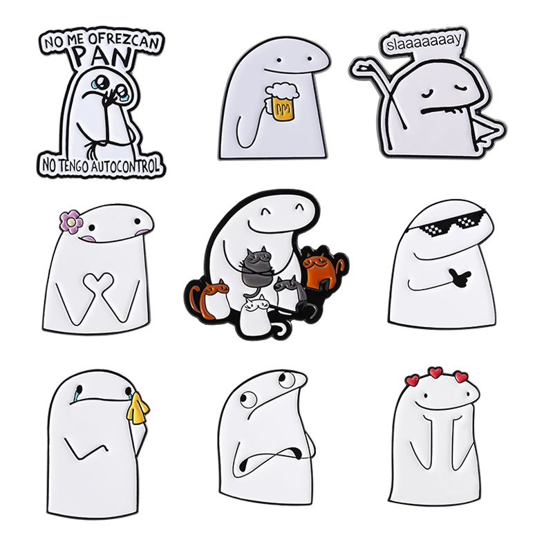 1-9pcs Funny Simplified Figures Flork And Cat Enamel Pins Cartoon Cute Characters Brooches Laple Badge Jewelry Gift for Friends