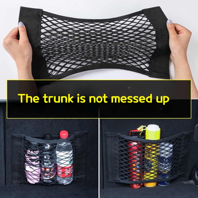 1 Car Net Car Trunk Storage Bag Luggage Storage Bag Double Stretch Velcro Car Storage Net Bag Mesh Storage Net