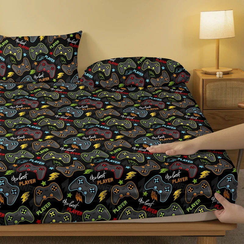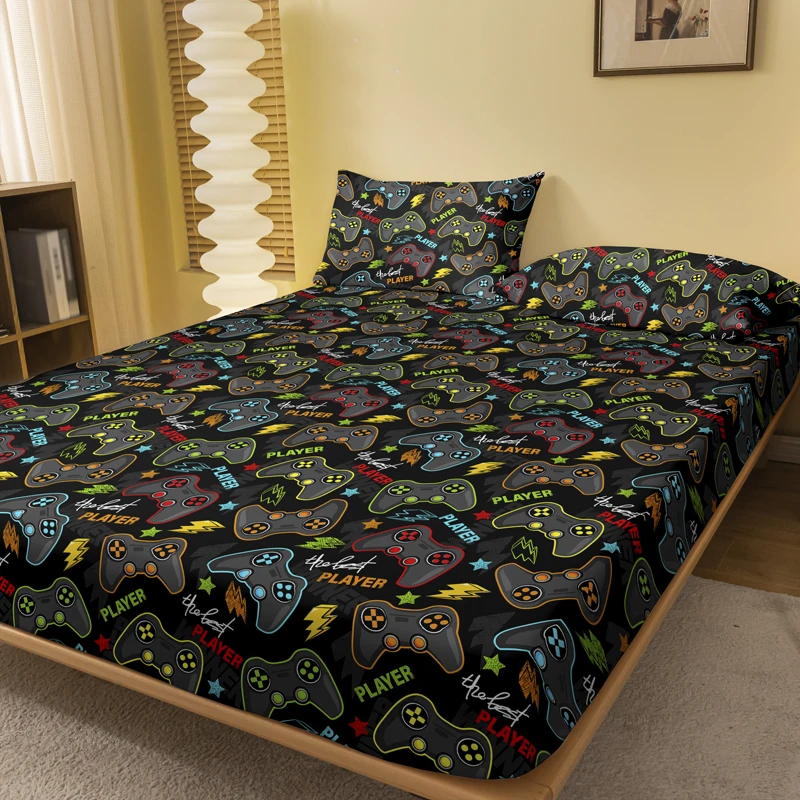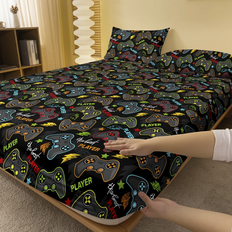 1 Cartoon Fun Printed Matte Fitted Sheet, Bedroom Printed Bed Cover, Bedding (Excluding Pillowcases)