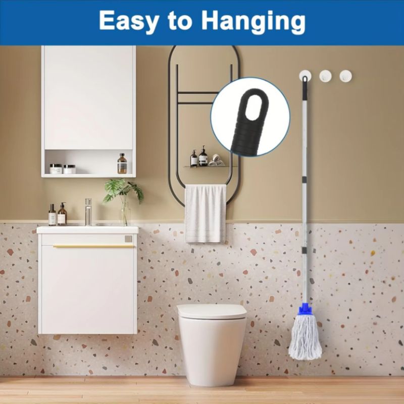 1 Commercial Heavy-Duty Industrial Cotton Circular Mop with 47 Inch Handle White for Floor Cleaning