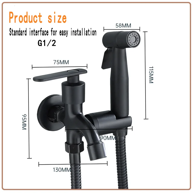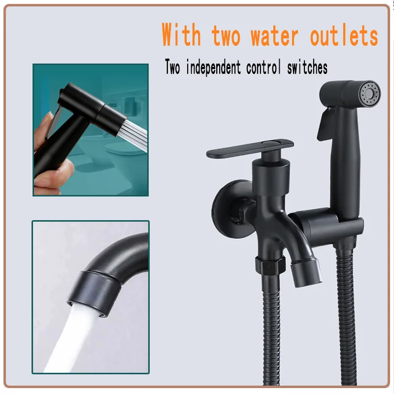 1 in 2 Out Two Way Water Tap Bathroom Faucet with Bidet Spray Holder G1/2 Interface Hose Toilet Faucets Bathroom Accessories