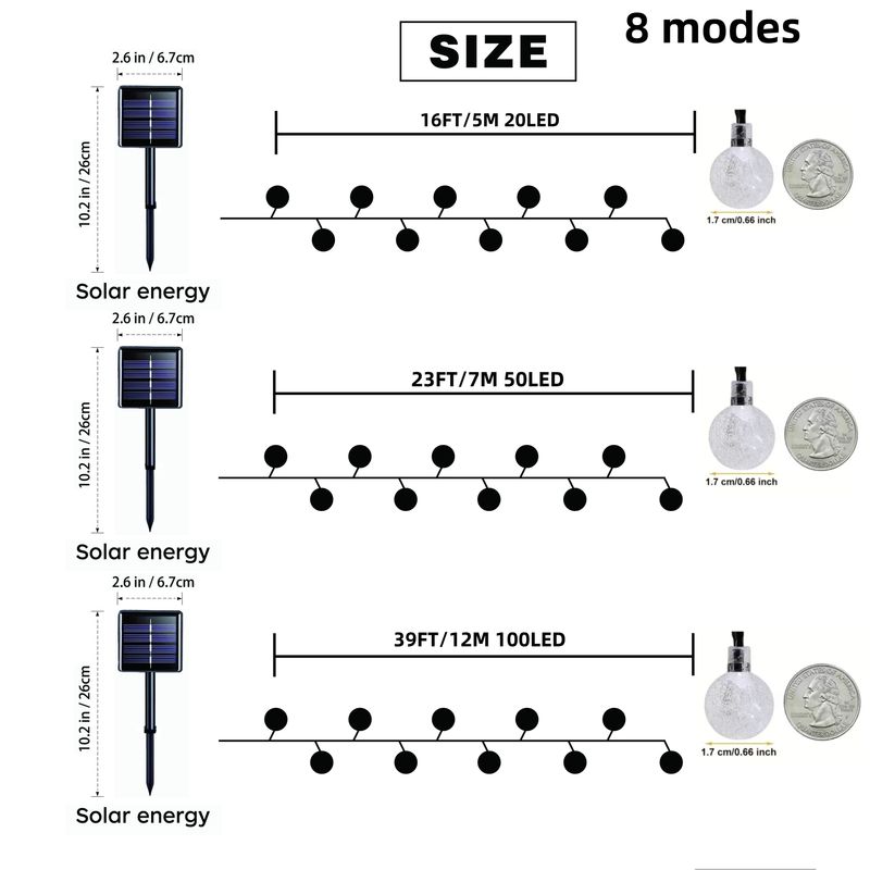 1 Pack 39FT IP65 Crystal Globe Solar String Lights 100 LED 8 Lighting Modes Solar Outdoor Lights For Halloween Christmas Party