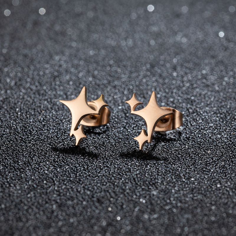 1 Pair 2024 Fashion Stainless Steel Cross Star Stud Earrings for Women Girl Korean Four-Pointed Star Personality Earrings Jewel