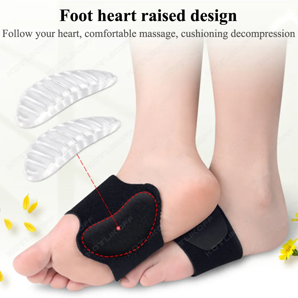 1 Pair Arch Support Brace Non-Slip Cushion Sole Foot Arch Support Plantar Fasciitis Heel Pain Aid Feet Care Absorb Shock Pads