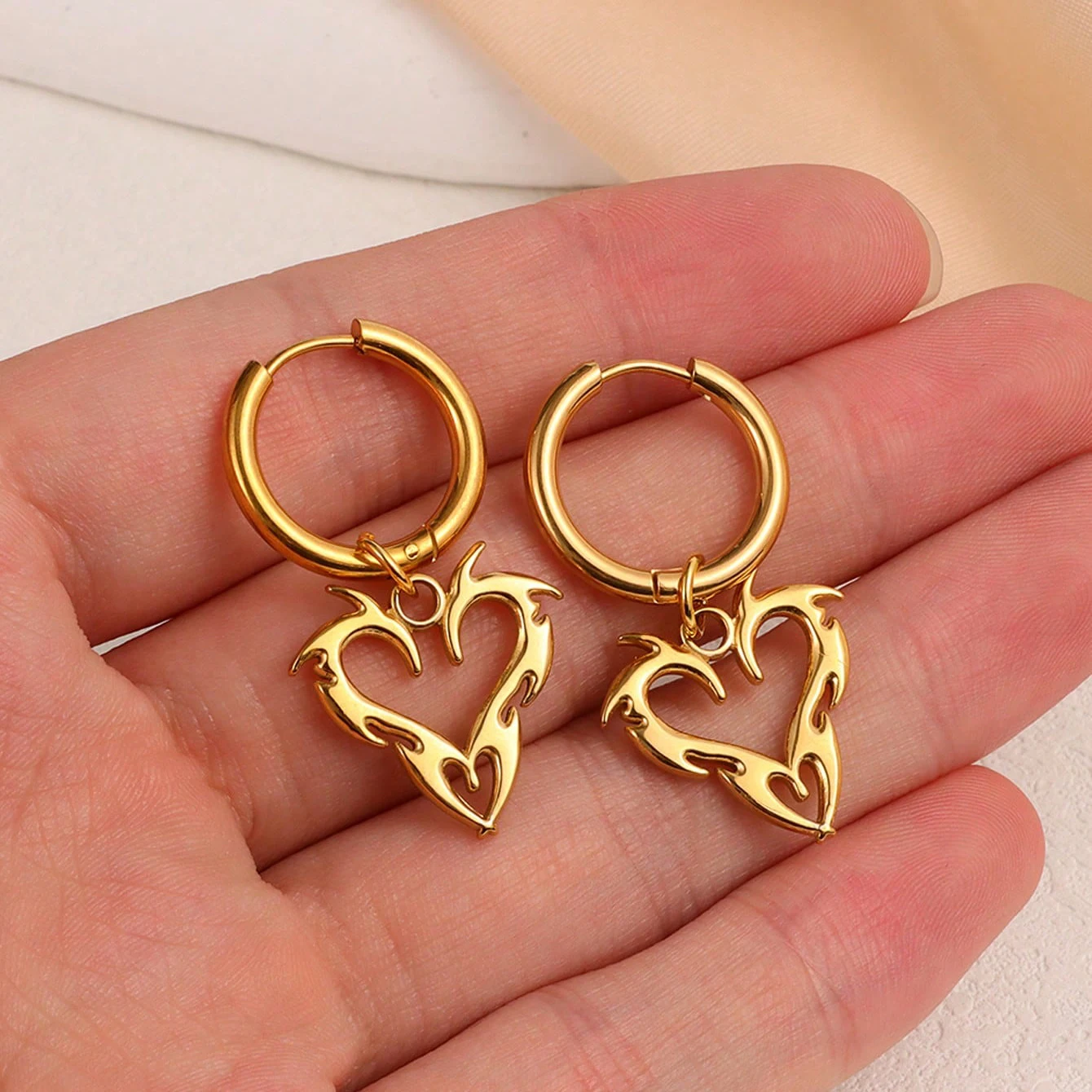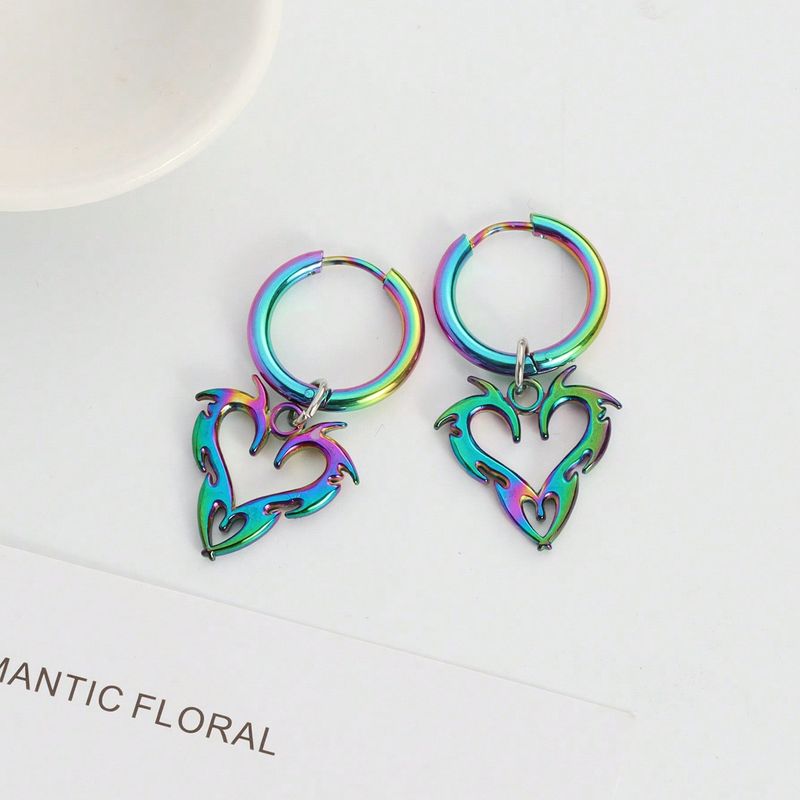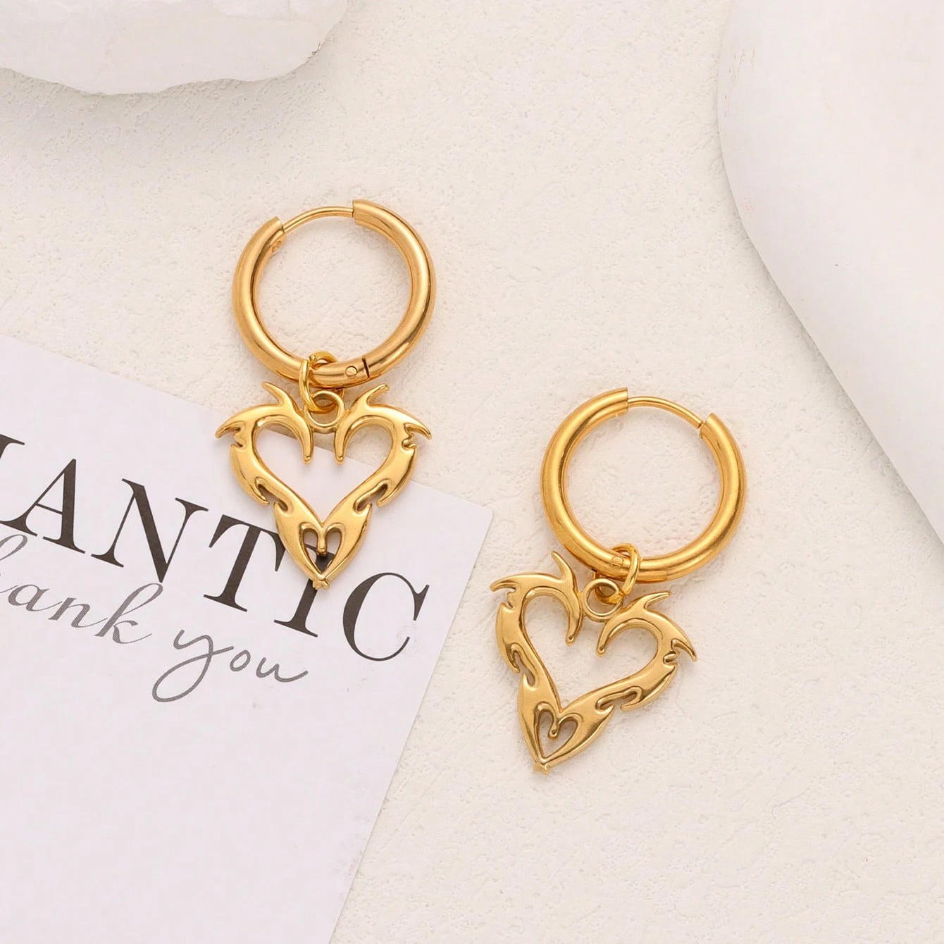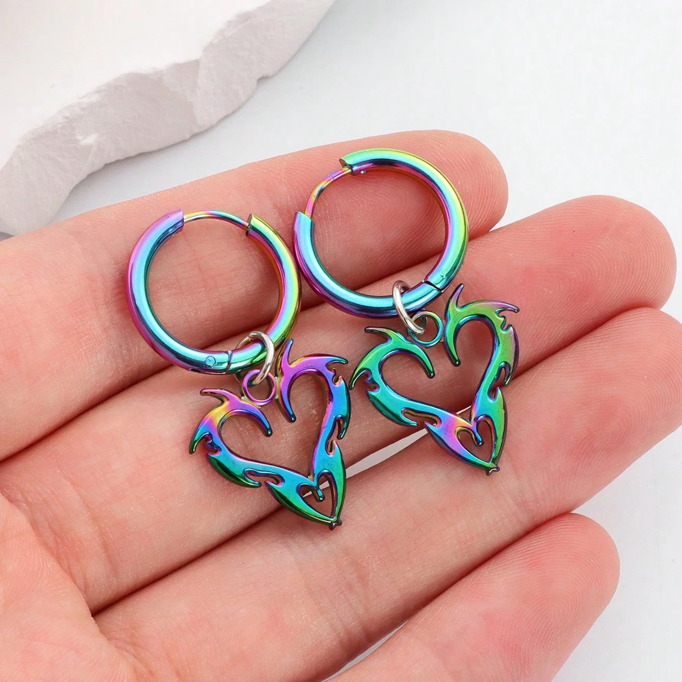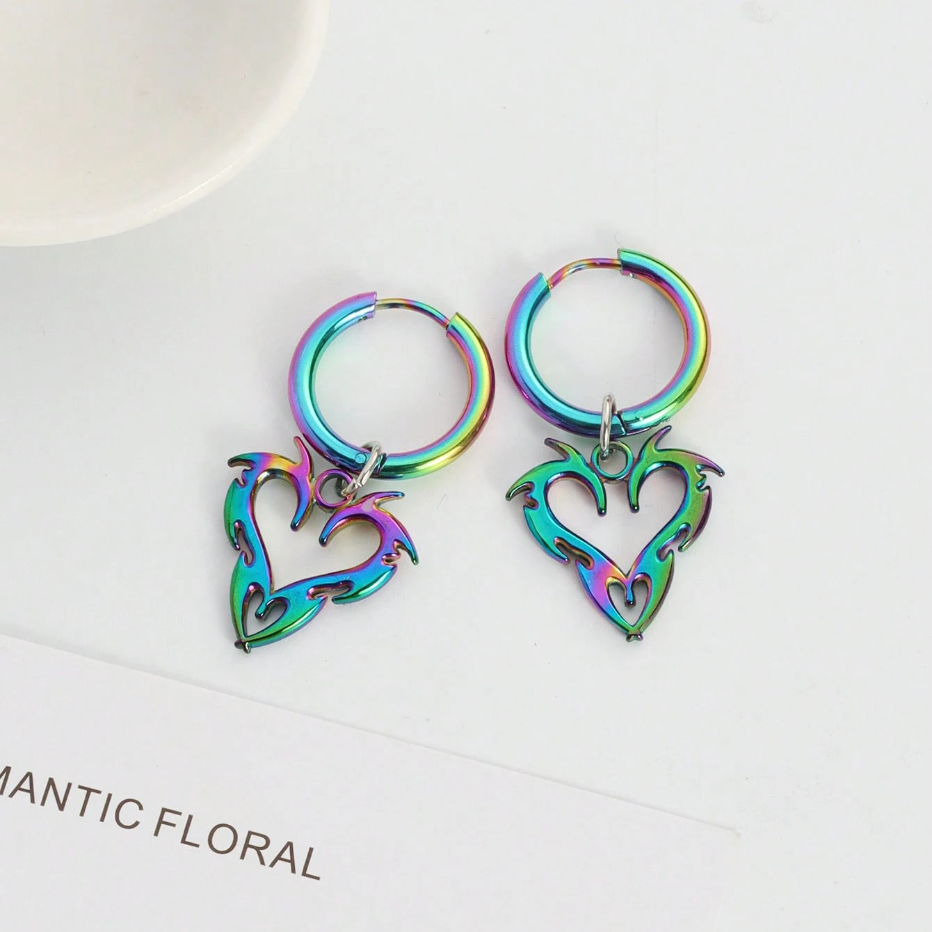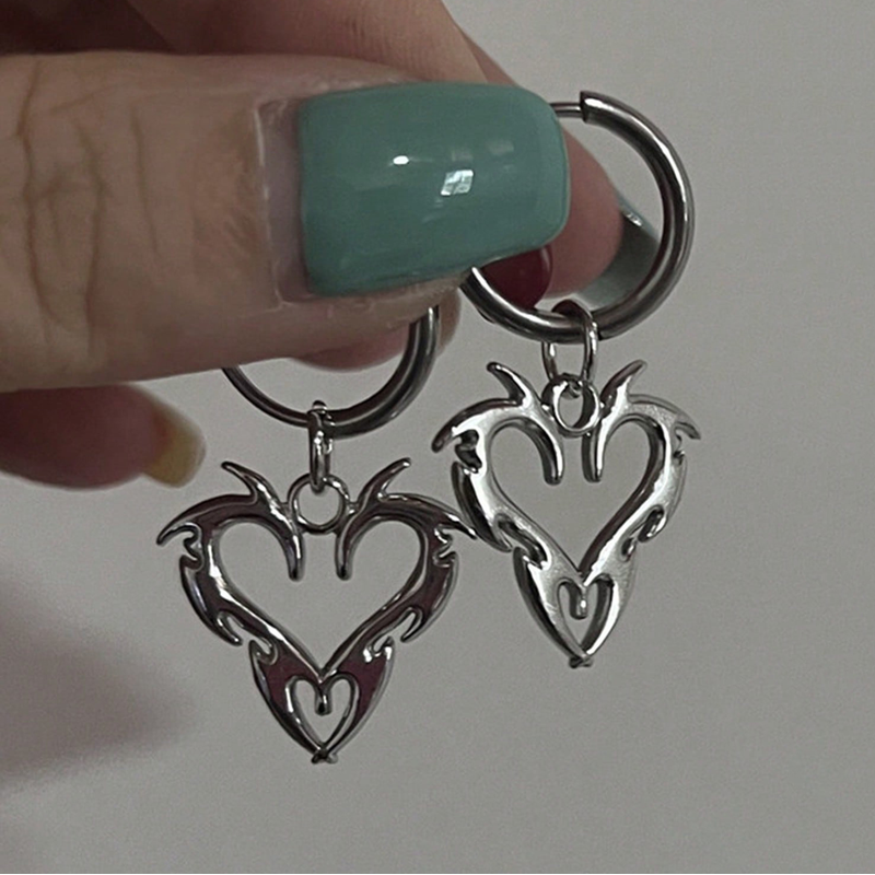 1 pair of punk spiky heart-shaped stainless steel pendant earrings, hip-hop Y2K accessories, suitable for women's daily jewelry