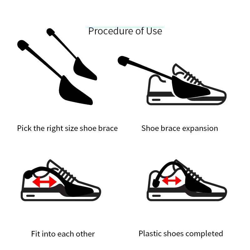 1 Pair Practical Plastic Adjustable Length Durable Black Women Men 2-Way Shoes Stretcher Tree Shaper Shoe Stretcher Holder