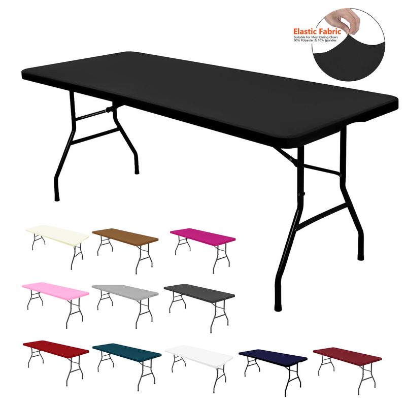 1 Pc 4/6/8ft Spandex Tablecloth Elastic Fitted Stretch Rectangular Tablecloth Washable and Wrinkle Resistant Patio Table Cover