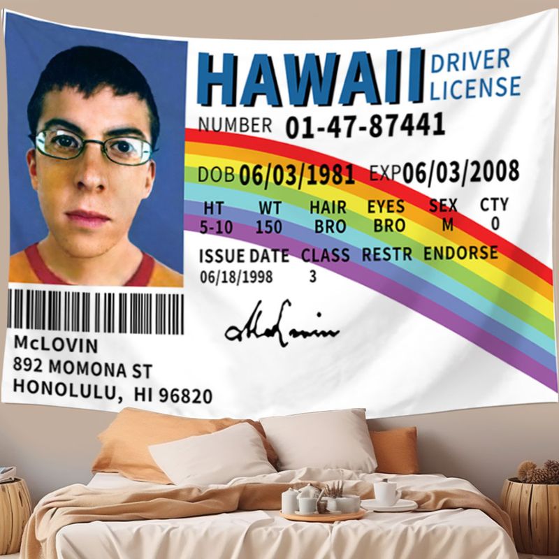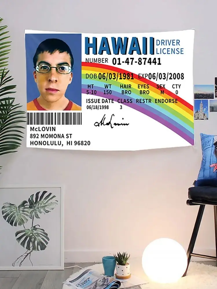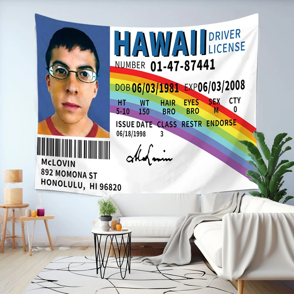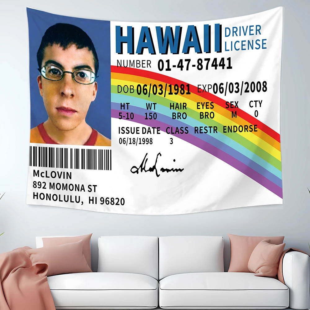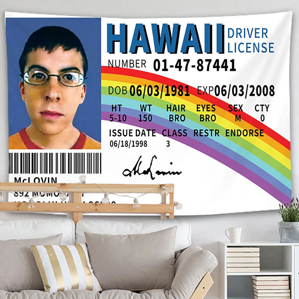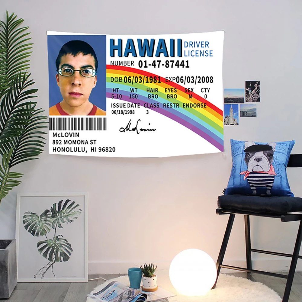 1 Pc Funny McLovin ID Flag Fake Driver License,Tapestry Banner Meme Tapestry with HD Printing,Cool Flags for College Dorm Room D