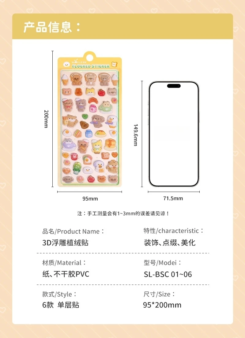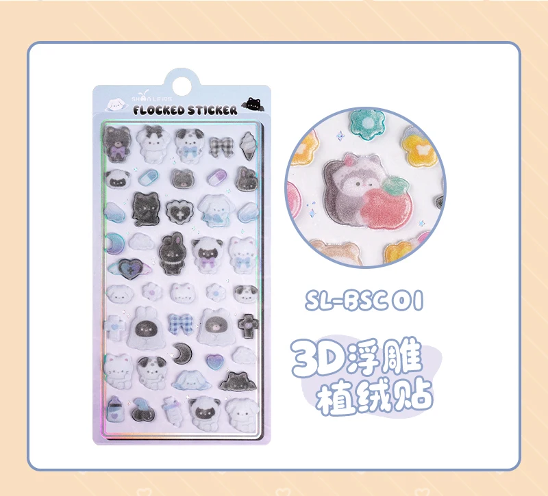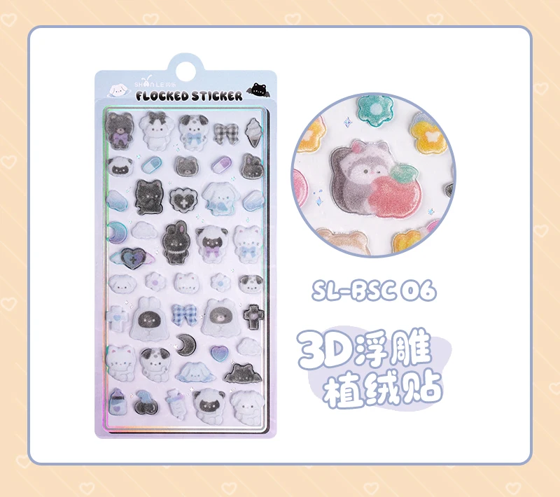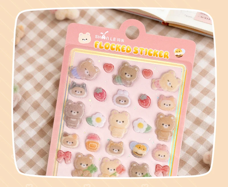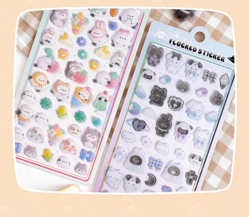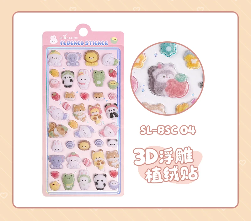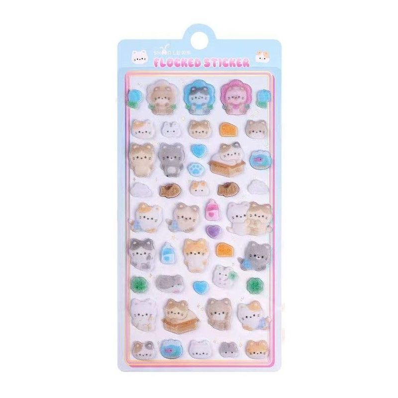 1 pc/6 pcs Cartoon Animals Flocked 3D Relief Stickers Journaling DIY Diary Cute Stationery Sticker Decor School Supplies