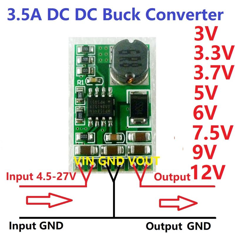 Product Name:1 PCS 3.5A DC-DC Converter Module Buck Step-Down Voltage Regulator Board 4.5V-27V to 3V 3.3V 3.7V 5V 6V 7.5 9V 12V