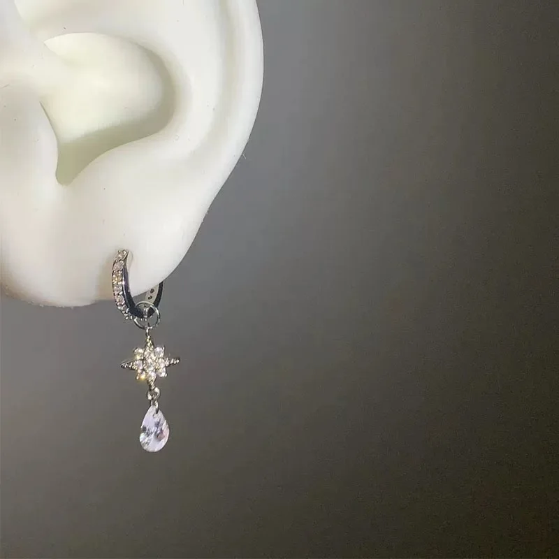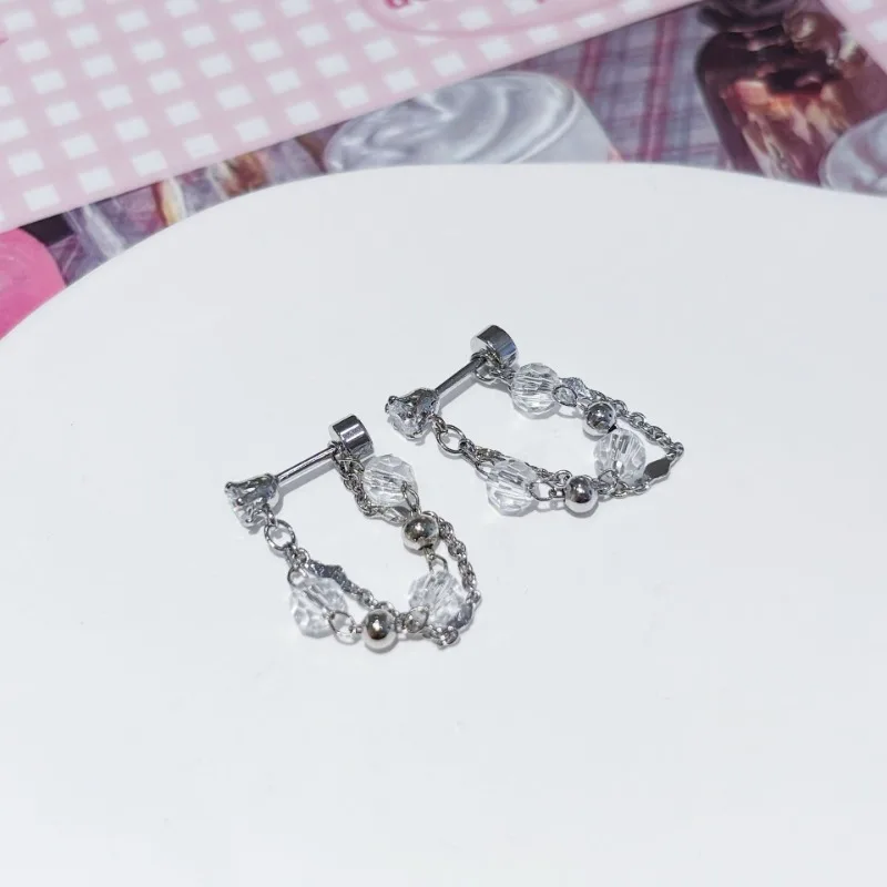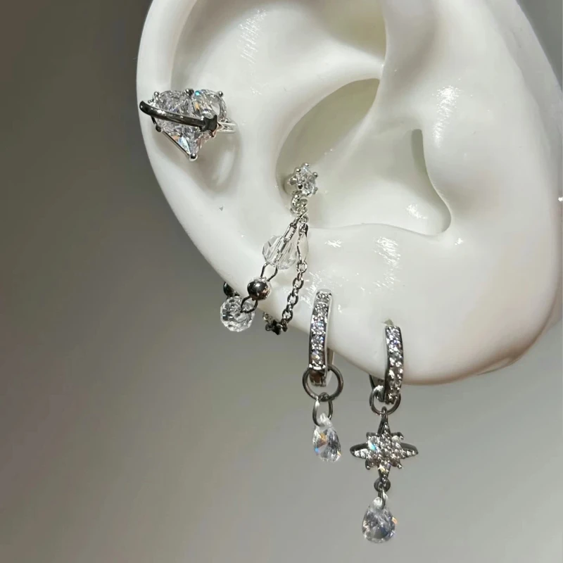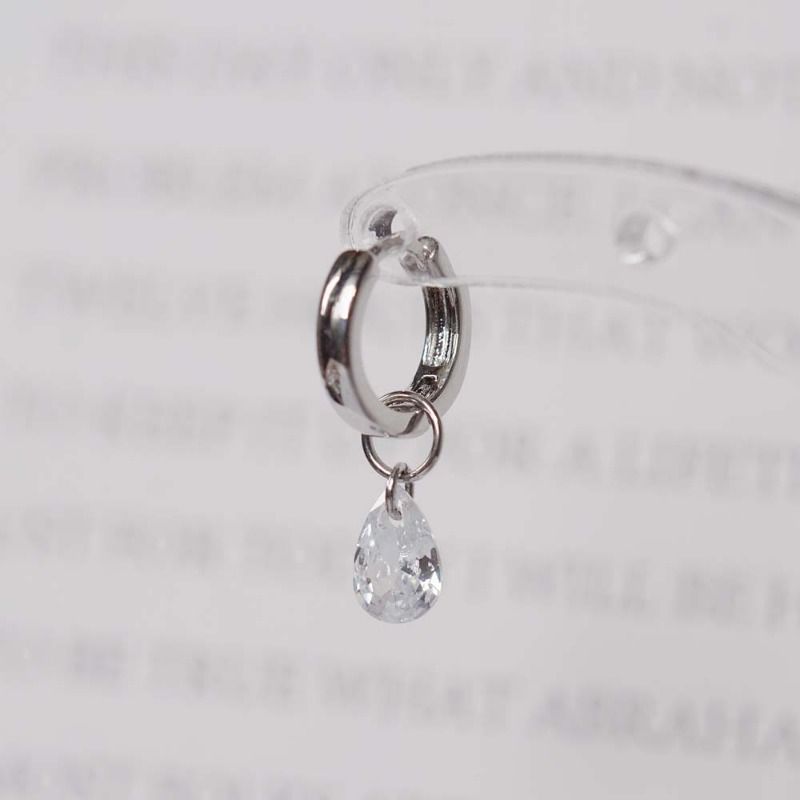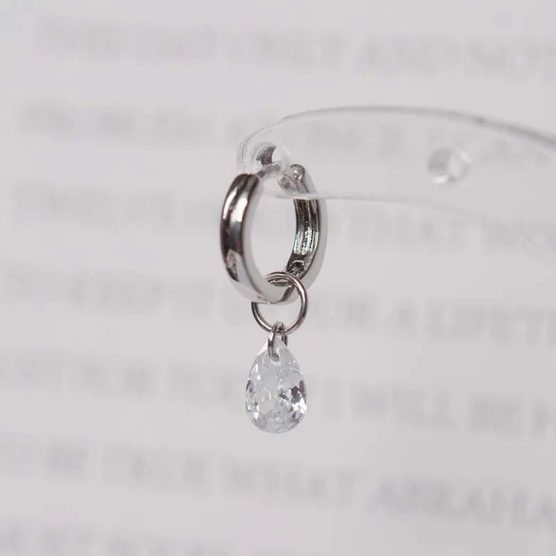 1 Pcs 316L Surgical Titanium Steel Water Drop Earrings, Double Layer Cochlear Chain White Heart Zircon, Hypoallergenic Jewelry