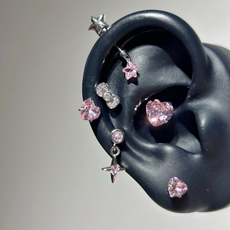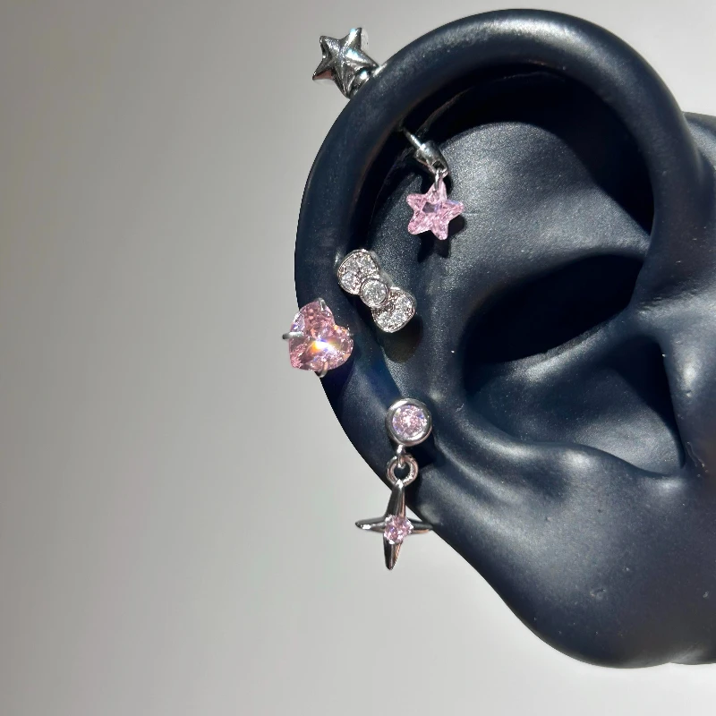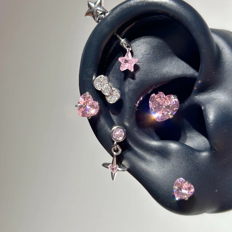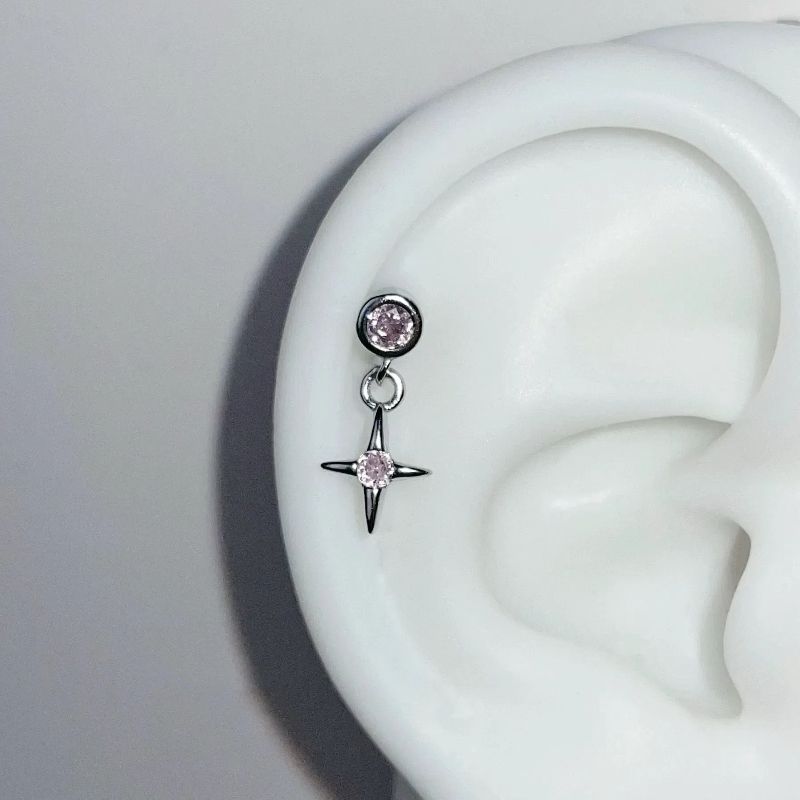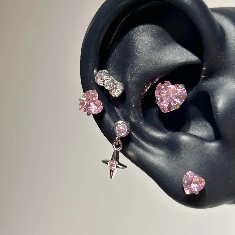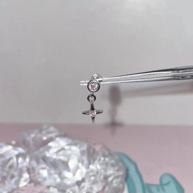 1 Pcs Bling Pink Cross Pendant Ear Bone Nail 316L Stainless Steel Allergy Prevention Earrings For Women