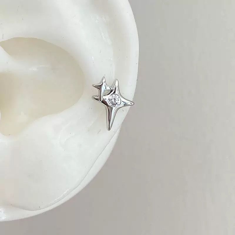 1 Pcs Bowknot Christmas Bell Zircon Silver Color Stainless Steel Ear Bone Cute Earring for Women Cochlea Accessories Puncture