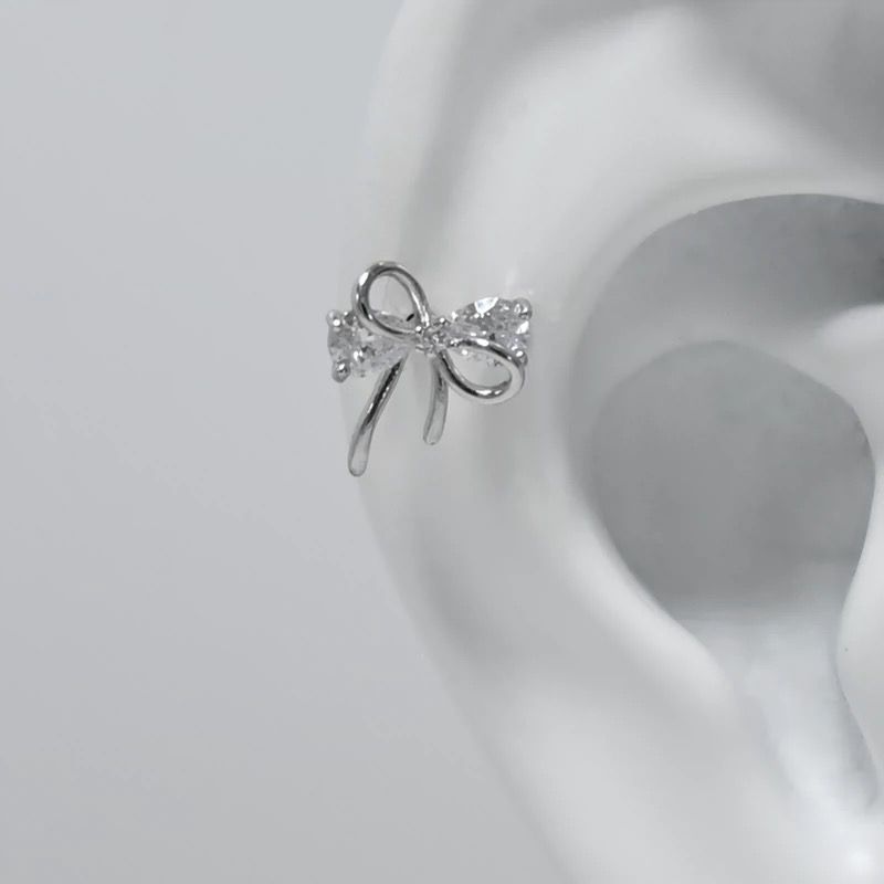 1 Pcs Bowknot Christmas Bell Zircon Silver Color Stainless Steel Ear Bone Cute Earring for Women Cochlea Accessories Puncture