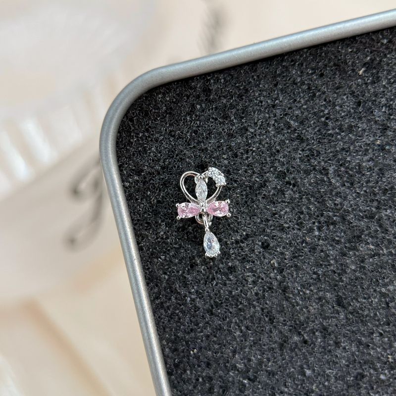 1 Pcs Cute Pink Bowknot Love Heart Ear Bone Nail 316L Stainless Steel Cartilage Piercing Earrings For Women Delicate Jewelry