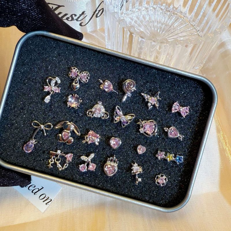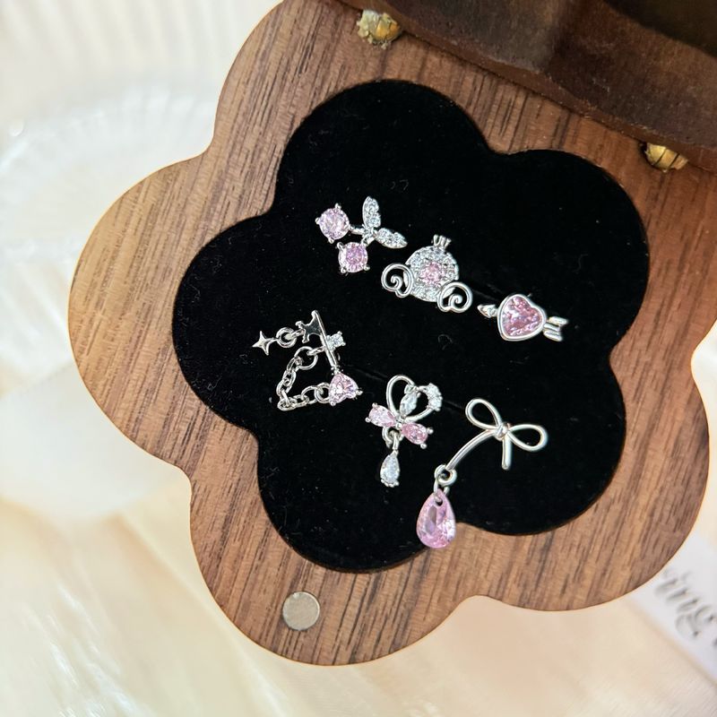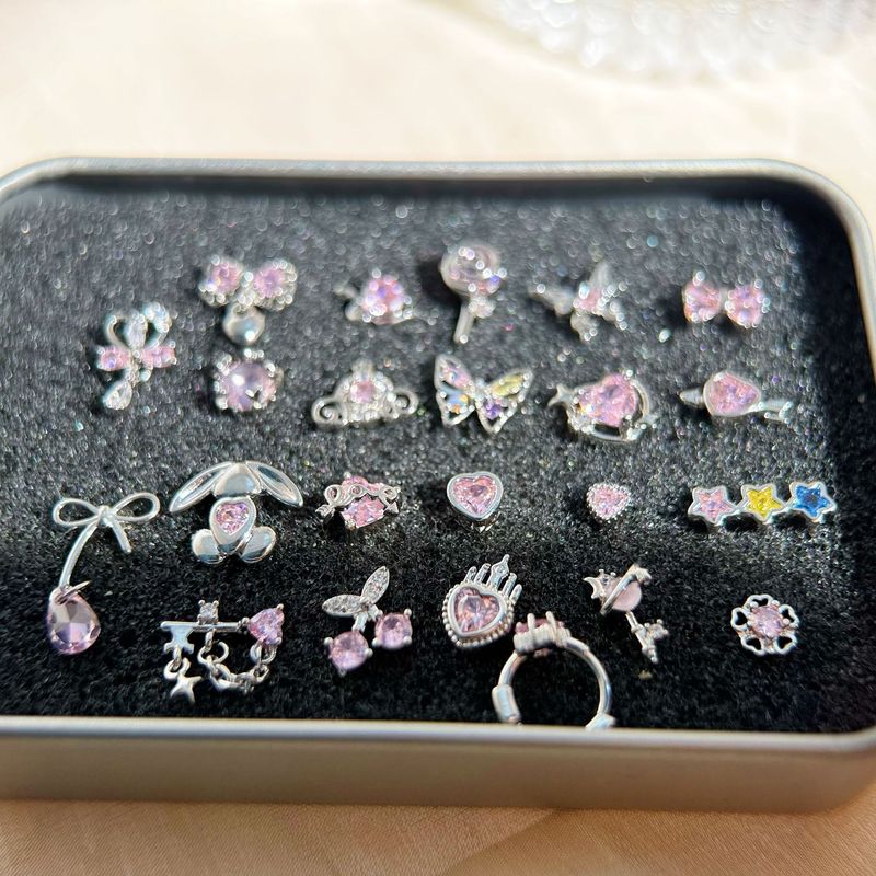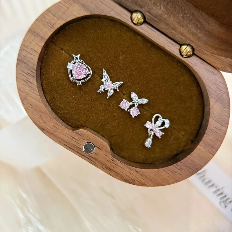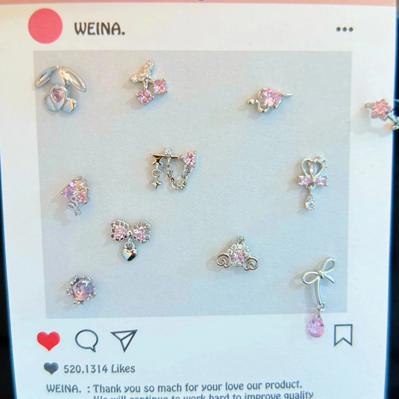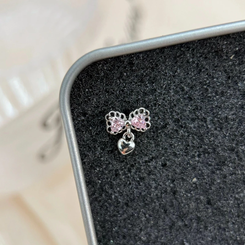 1 Pcs Cute Pink Bowknot Love Heart Ear Bone Nail 316L Stainless Steel Cartilage Piercing Earrings For Women Delicate Jewelry