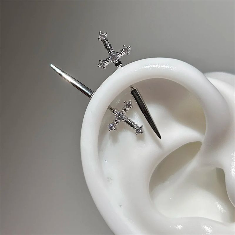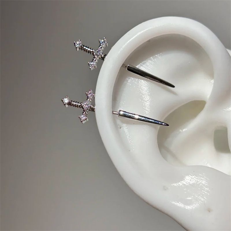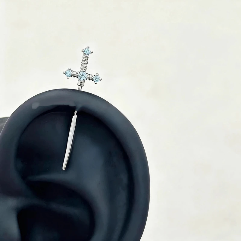 1 Pcs Excalibur Demon Sword Ear Studs Surgical Steel Anti-Allergic Wing Earrings for Helix Conch Cartilage Piercing Jewelry