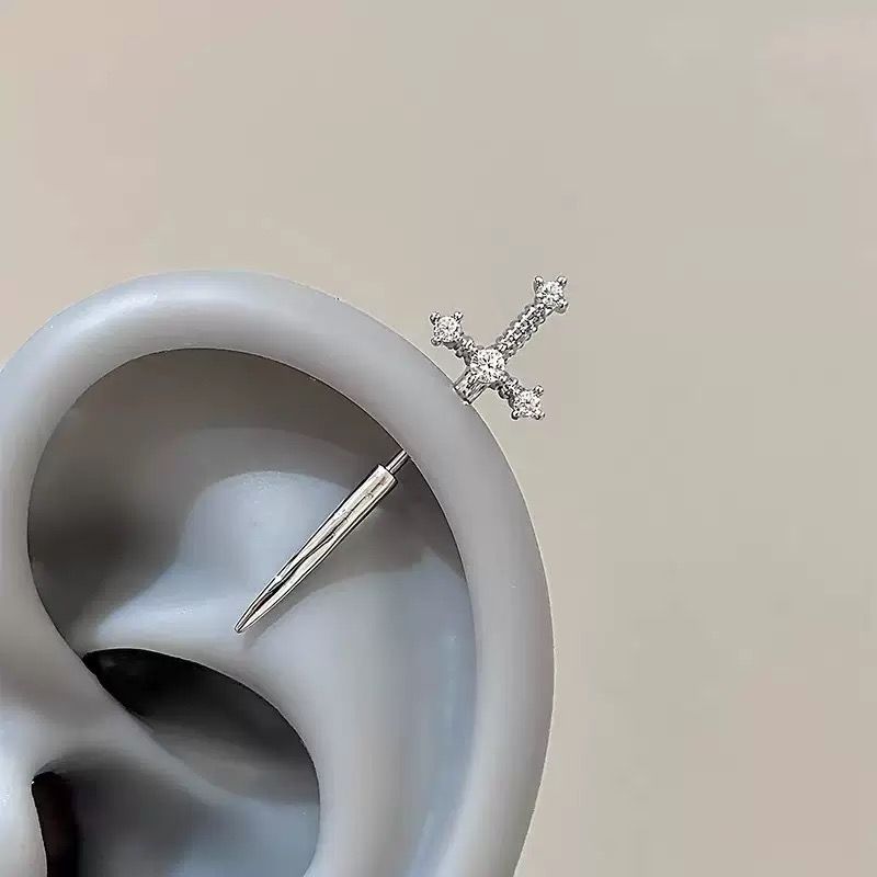 1 Pcs Excalibur Demon Sword Ear Studs, Surgical Steel Wing Helix Conch Ear Piercing Jewelry, Anti-allergic Cartilage Earring
