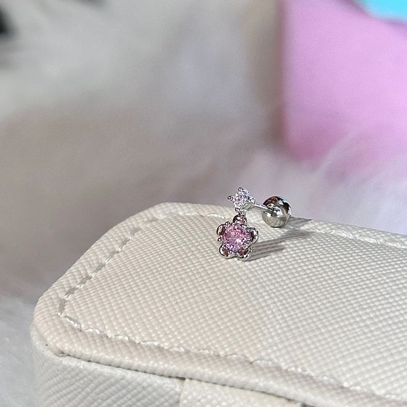 1 PCS New Fashion Cute Pink Zircon Crystal Ear Bone Nail 316L Medical Titanium Steel Earrings for Women Y2K Punk Jewelry