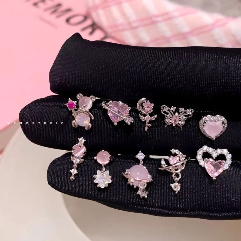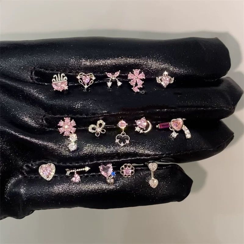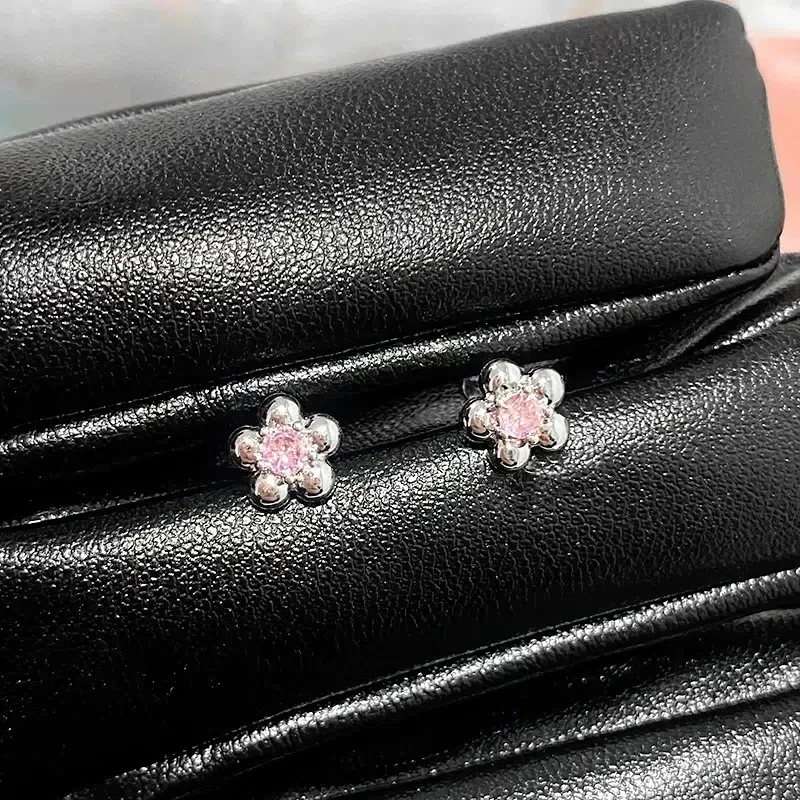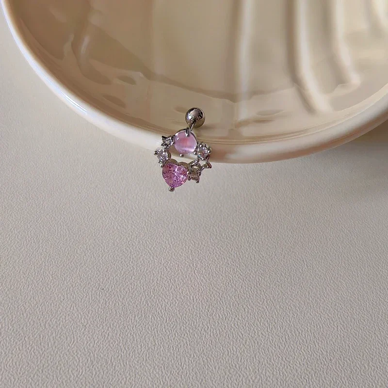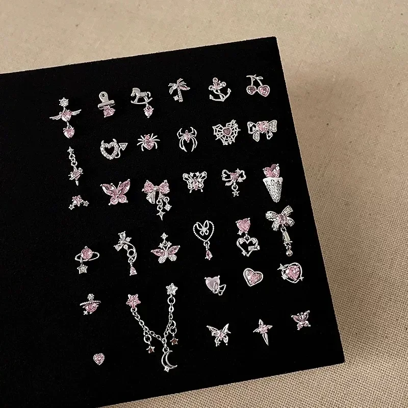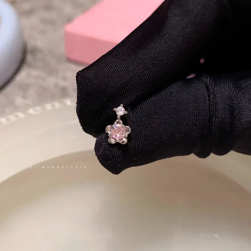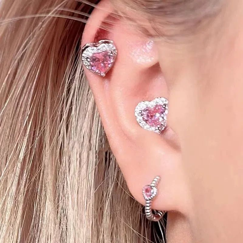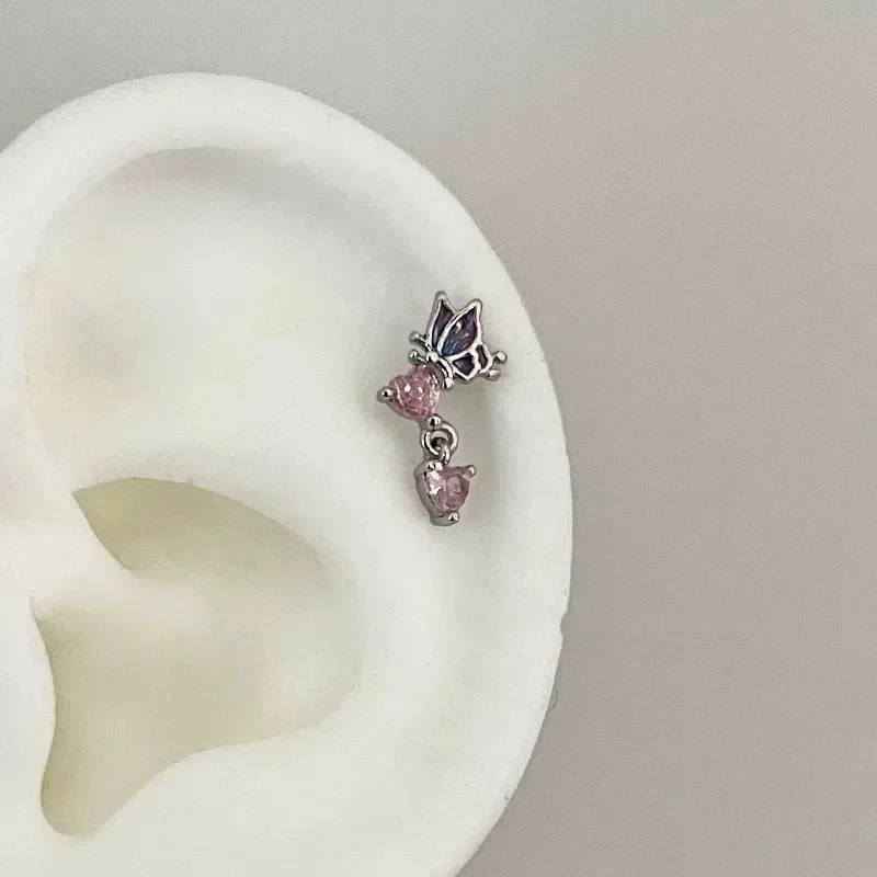 1 PCS New Fashion Cute Pink Zircon Crystal Ear Bone Nail 316L Medical Titanium Steel Earrings for Women Y2K Punk Jewelry