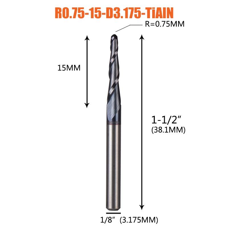 1 pcs Solid Carbide Coated Taper Ball Nose bit CNC Milling Cutter Router Bits for Wood and Cutters for Metal End Mill