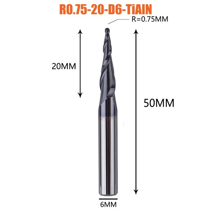 1 pcs Solid Carbide Coated Taper Ball Nose bit CNC Milling Cutter Router Bits for Wood and Cutters for Metal End Mill