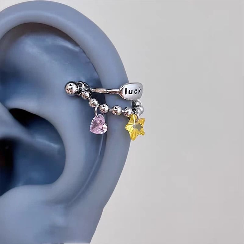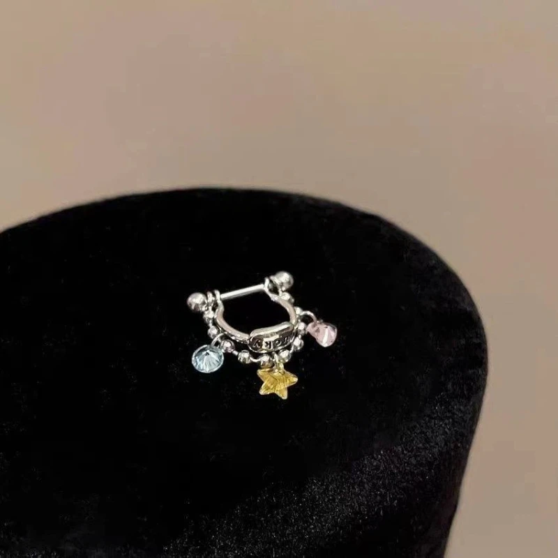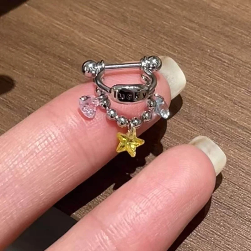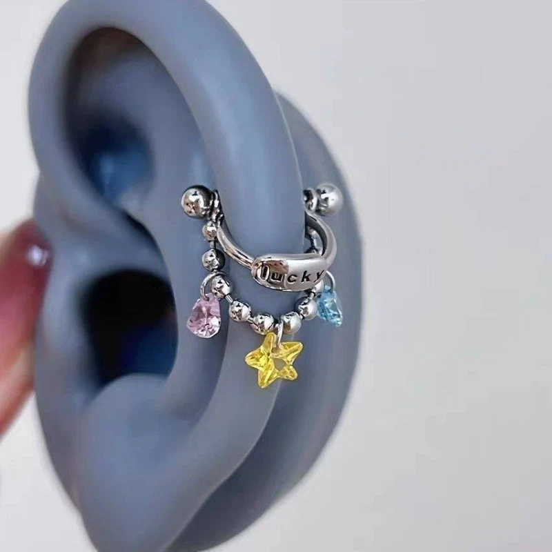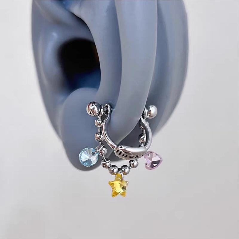 1 Pcs Star Chain Zircon Hoop Earrings Women Stainless Steel Cartilage Ear Bone Nail Earrings, Cross Trendy Body Piercing Jewelry