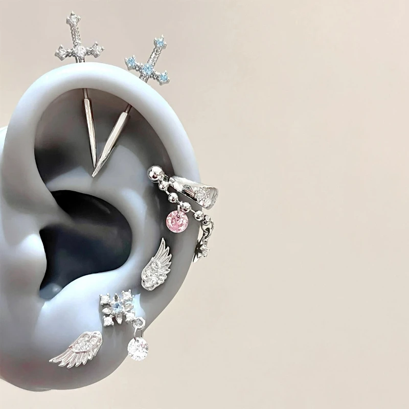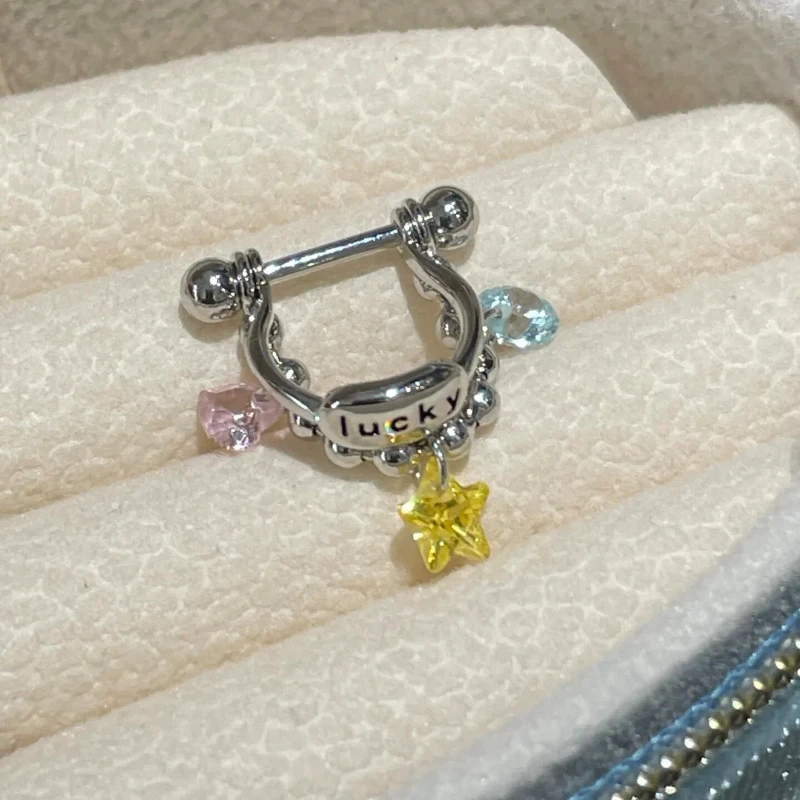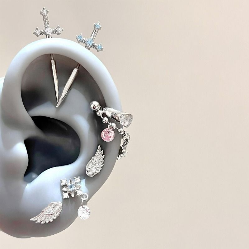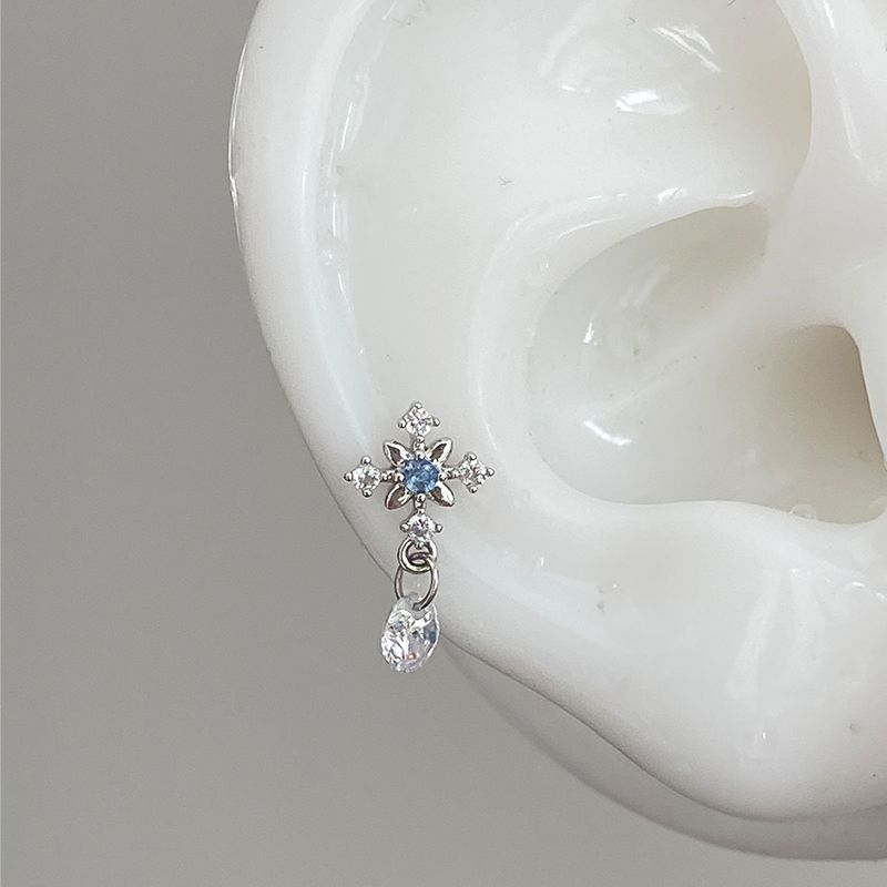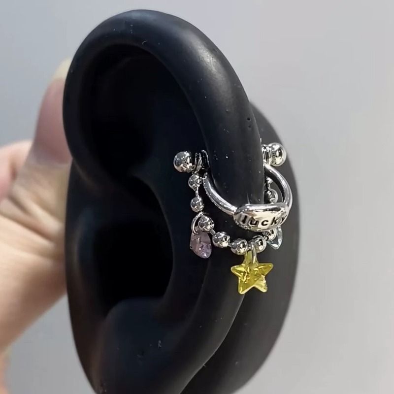 1 Pcs Star Chain Zircon Hoop Earrings Women Stainless Steel Cartilage Ear Bone Nail Earrings, Cross Trendy Body Piercing Jewelry
