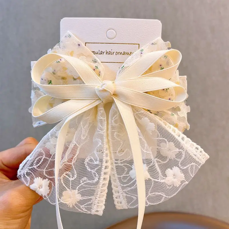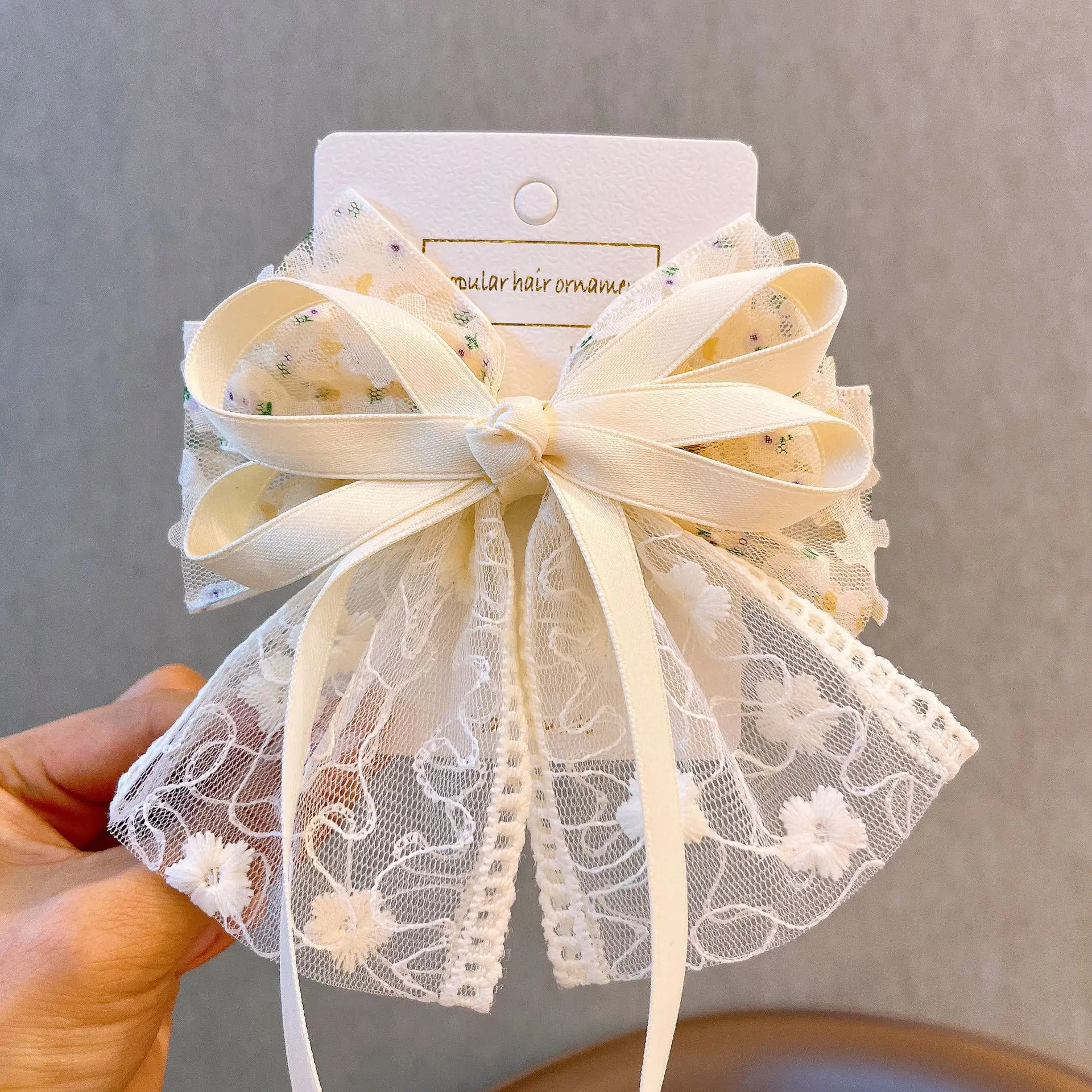 1 Pcs Women's Hair Clips Floral Bow Cute Kawaii Sweet Girl's Barrettes Ribbon Lace Fashionable Trendy Hair Accessories Children