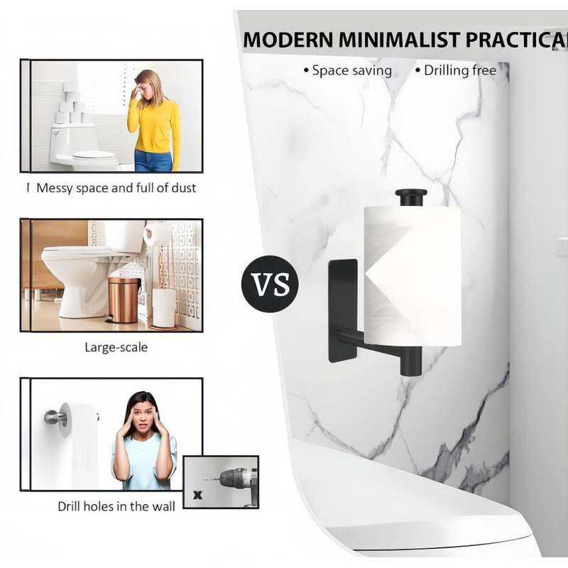 1 Piece 304 Stainless Steel Perforated Paper Towel Roll Dispenser, Suitable for Bathrooms, Self-Adhesive Toilet Paper Holder