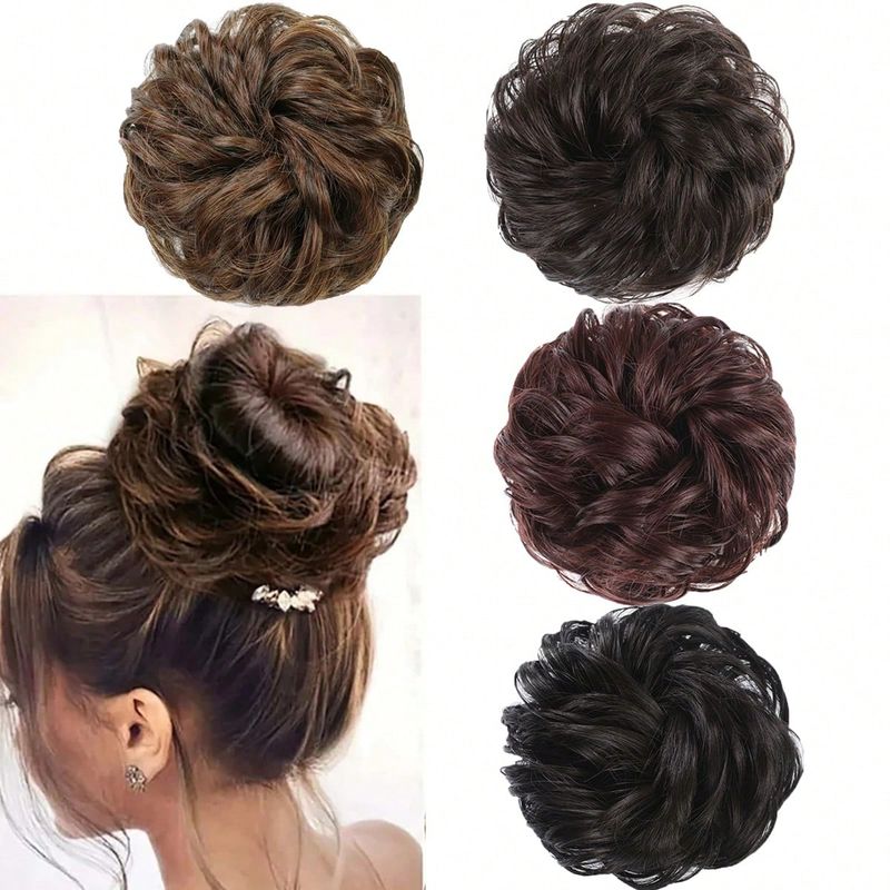 1 Piece Bun Hairpiece Made of Artificial Silk, Hair Ring for Creating a Bun Hairstyle, Women's Hair Accessory, Elastic Wavy Curly Hair Bun Extension, Synthetic Hairpiece for Volume and Curls, Suitable for Women and Girls