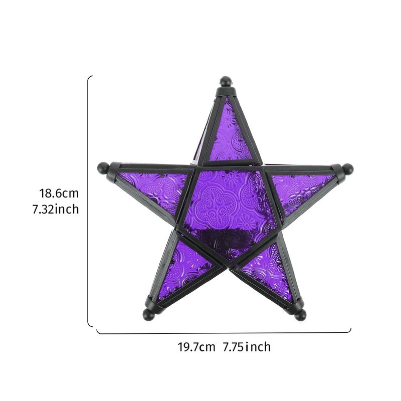 1 piece forged iron painted glass five-pointed star hanging candlestick, suitable for home and restaurant decoration