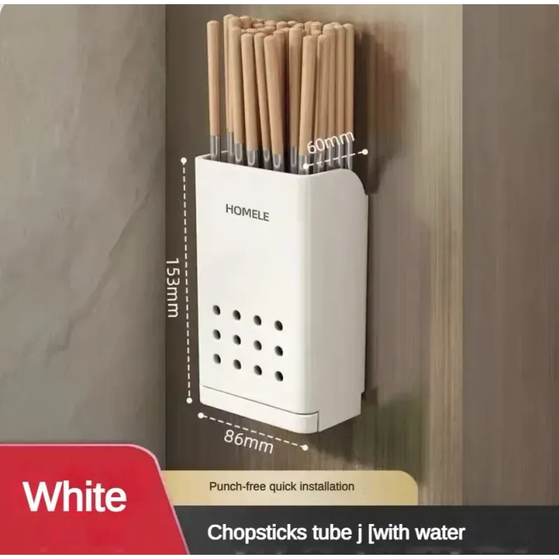 1-Piece Kitchen Utensil Rack-Multifunctional Draining Chopstick Holder Wall-Mounted or Freestanding Cutlery Storage Box Plastic