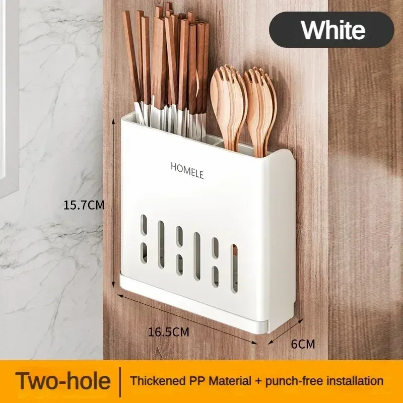 1-Piece Kitchen Utensil Rack-Multifunctional Draining Chopstick Holder Wall-Mounted or Freestanding Cutlery Storage Box Plastic