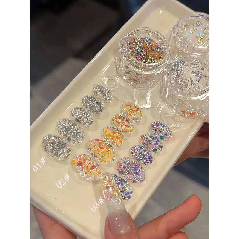 1 piece of white color Internet celebrity hot-selling light chasing flash nail art sequins series nail art mixed material powder