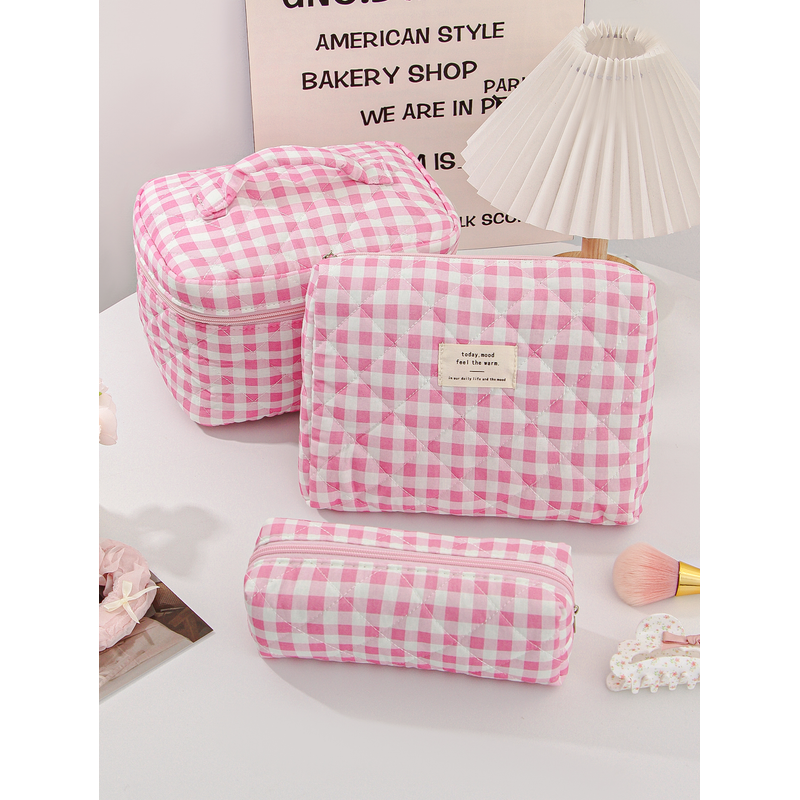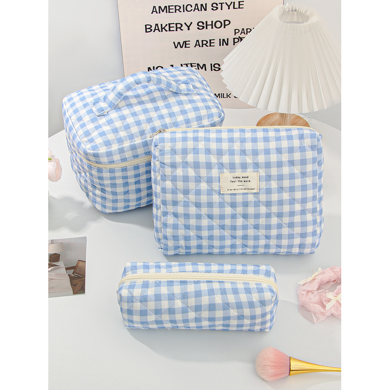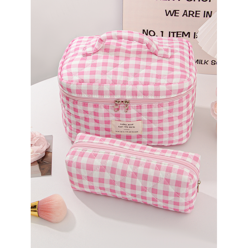 1 piece/set lattice quilted makeup bag, multifunctional makeup bag, large capacity toiletry bag, travel storage makeup bag