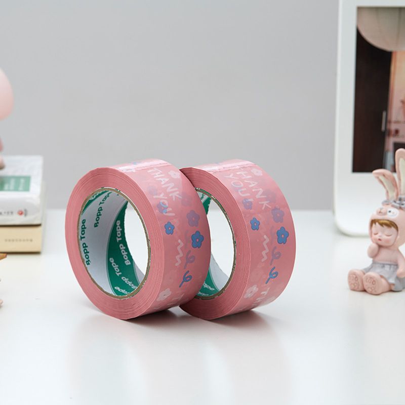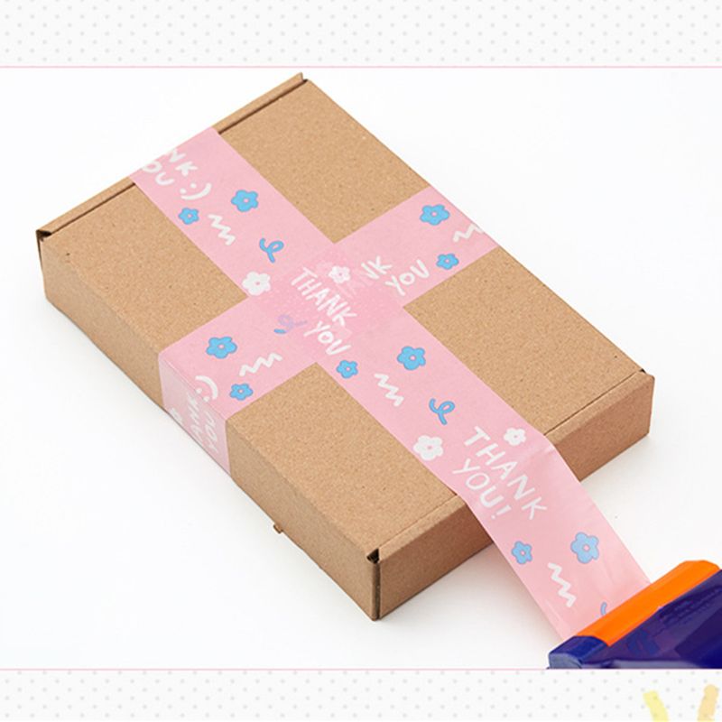 1 Roll of 4.5Cm*100M Pink Flower Thanksk You Tape, Thank You Gratitude Cartoon Sealing Tape, Self-Adhesive Gift Bag Carton Packaging Tape