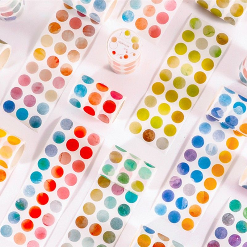 1 roll Watercolor Polka Dot Sticker Junk Journaling Accessories Scrapbooking DIY Color Label Washi Sticker Stationery Suit