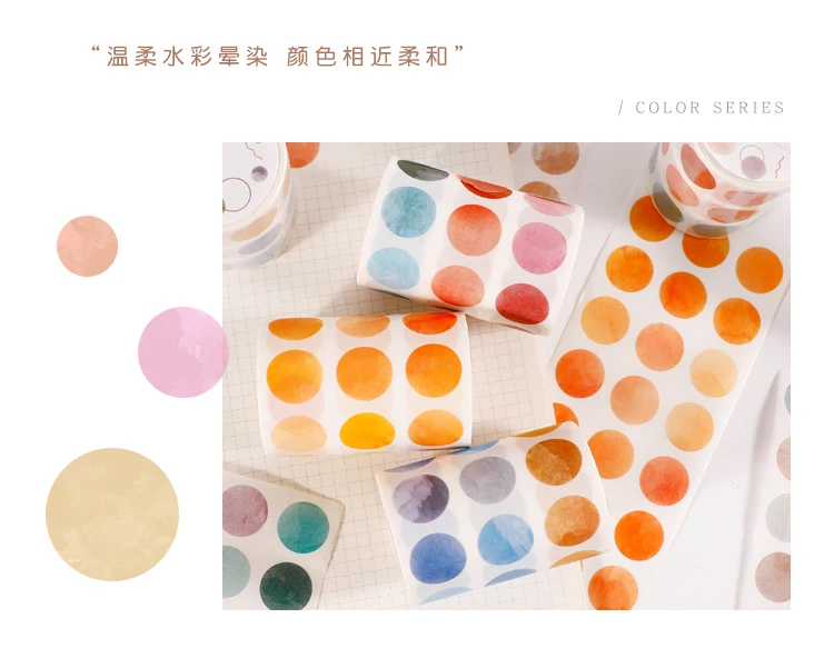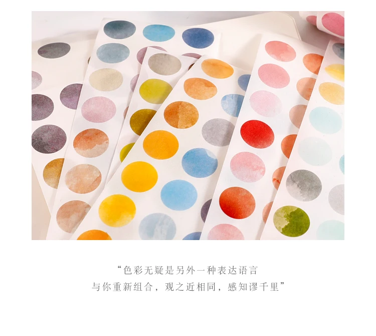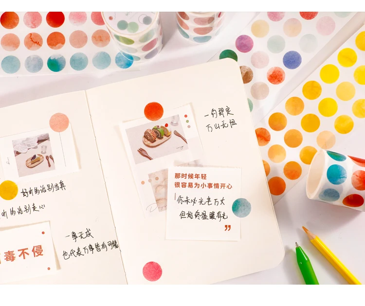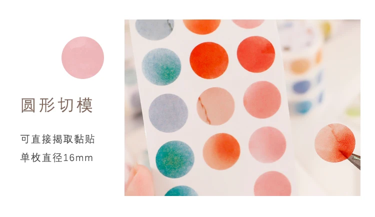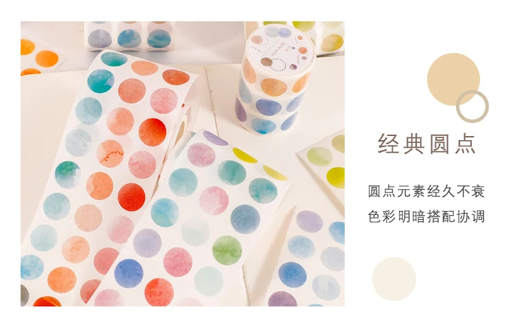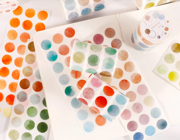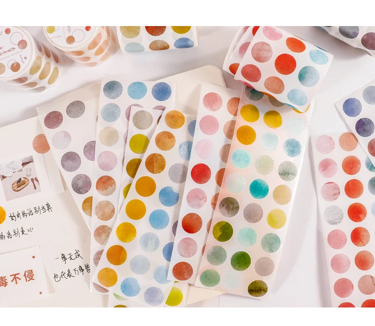 1 roll Watercolor Polka Dot Sticker Junk Journaling Accessories Scrapbooking DIY Color Label Washi Sticker Stationery Suit