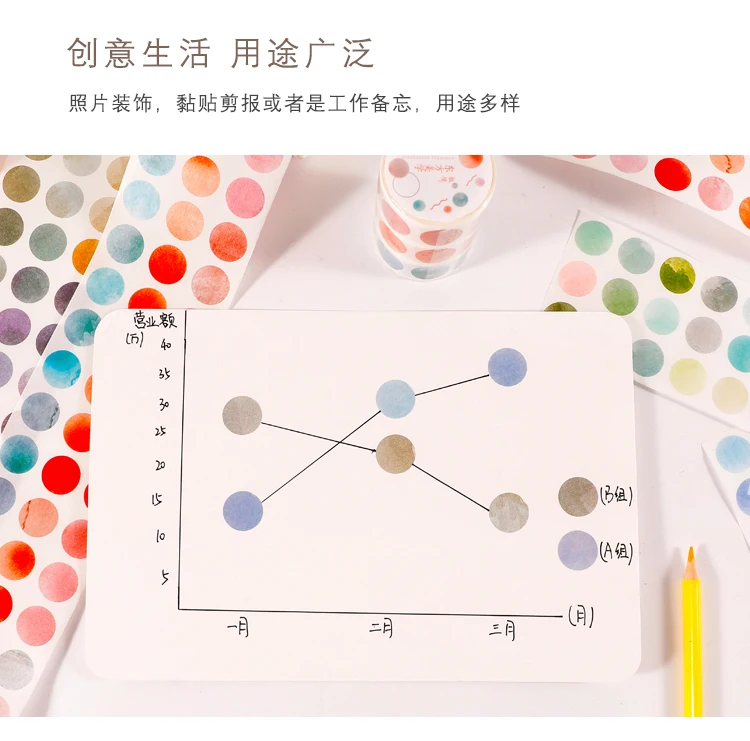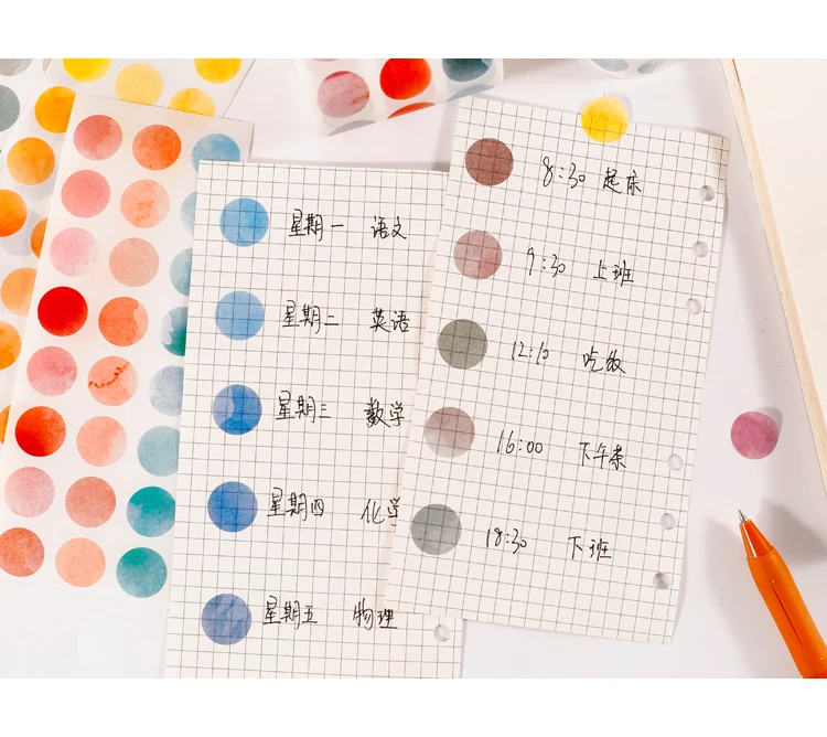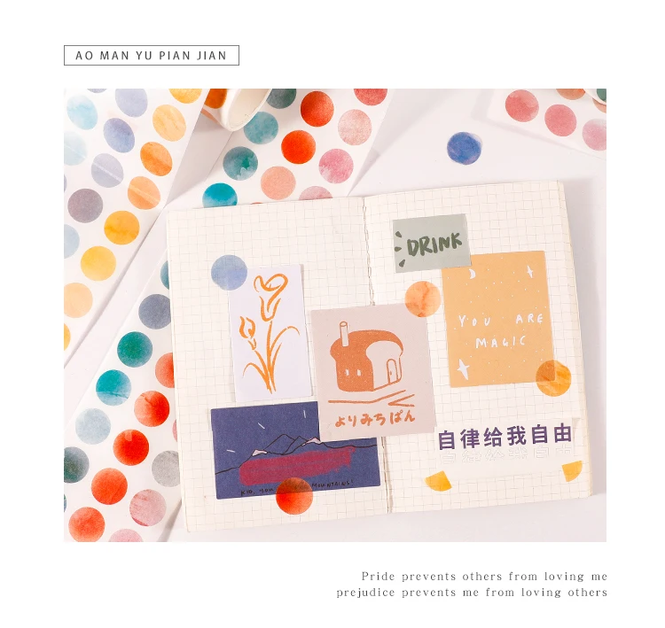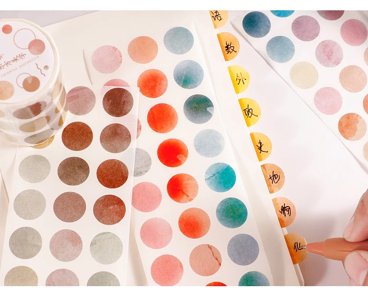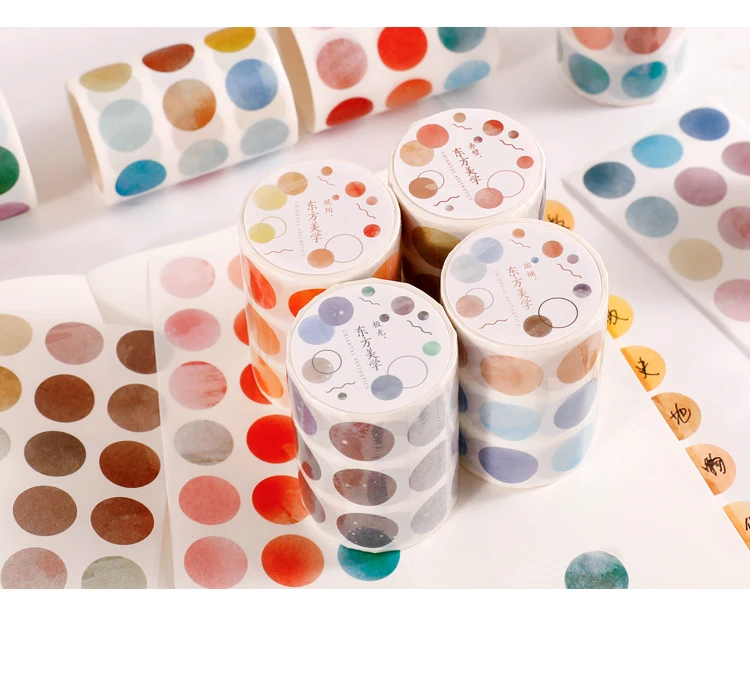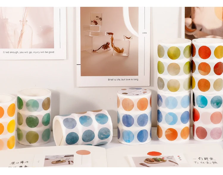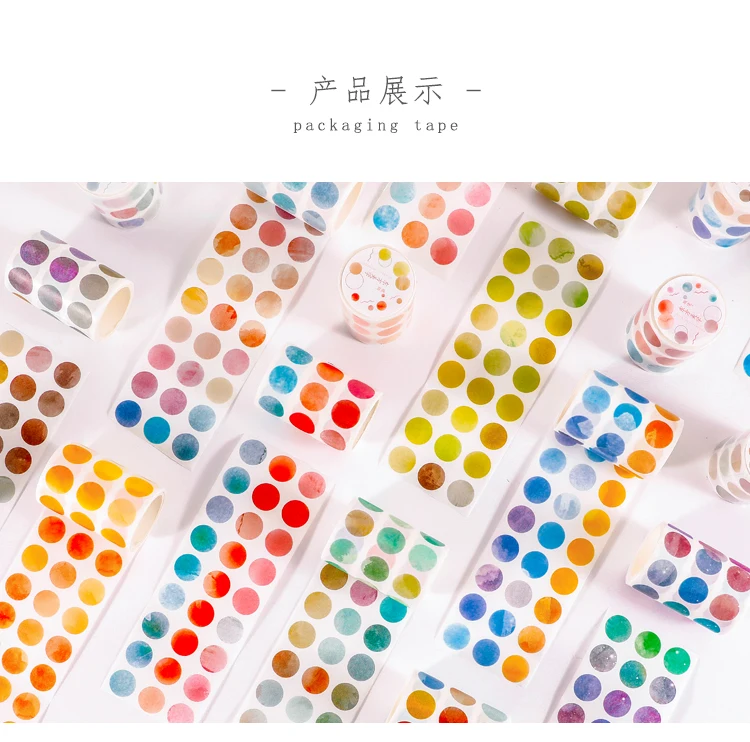 1 roll Watercolor Polka Dot Sticker Junk Journaling Accessories Scrapbooking DIY Color Label Washi Sticker Stationery Suit