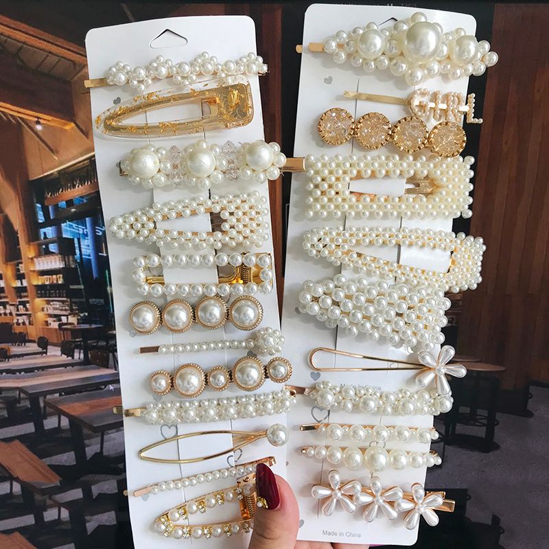 1 Set Flower Pearl Hair Clips For Women Fashion Acrylic Hairpins Hairgrips New Girl Hair Accessories Geometric Barrettes Jewelry