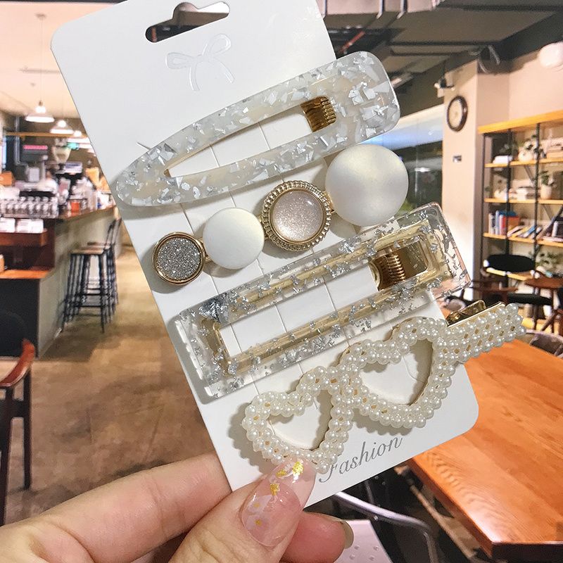 1 Set Flower Pearl Hair Clips For Women Fashion Acrylic Hairpins Hairgrips New Girl Hair Accessories Geometric Barrettes Jewelry