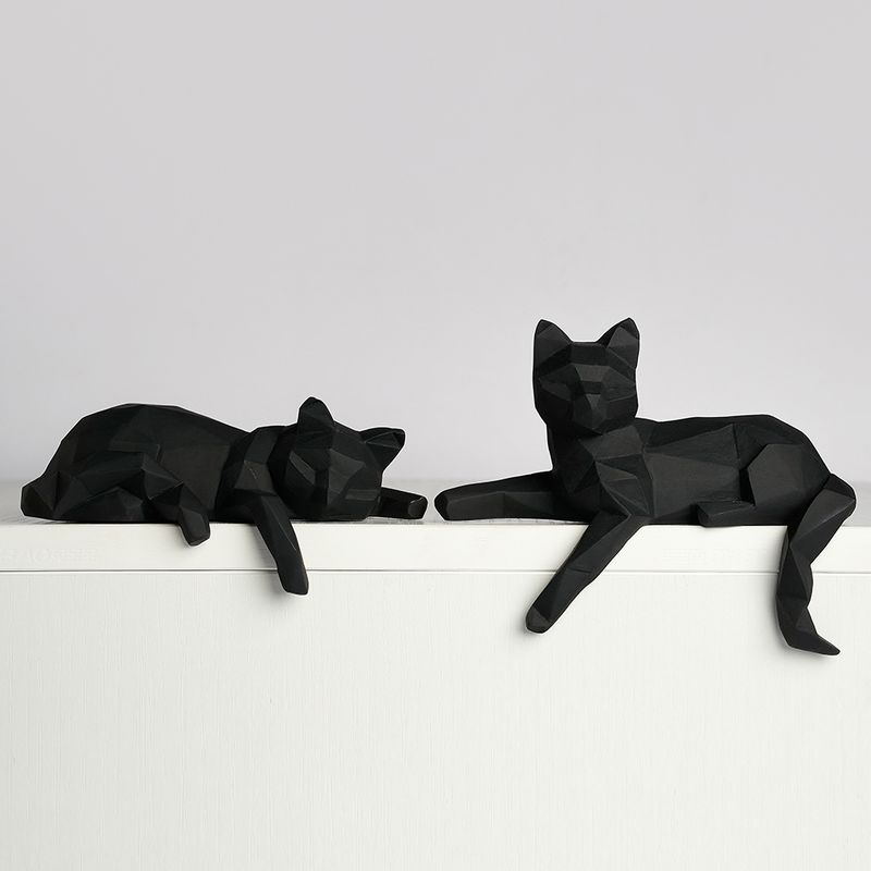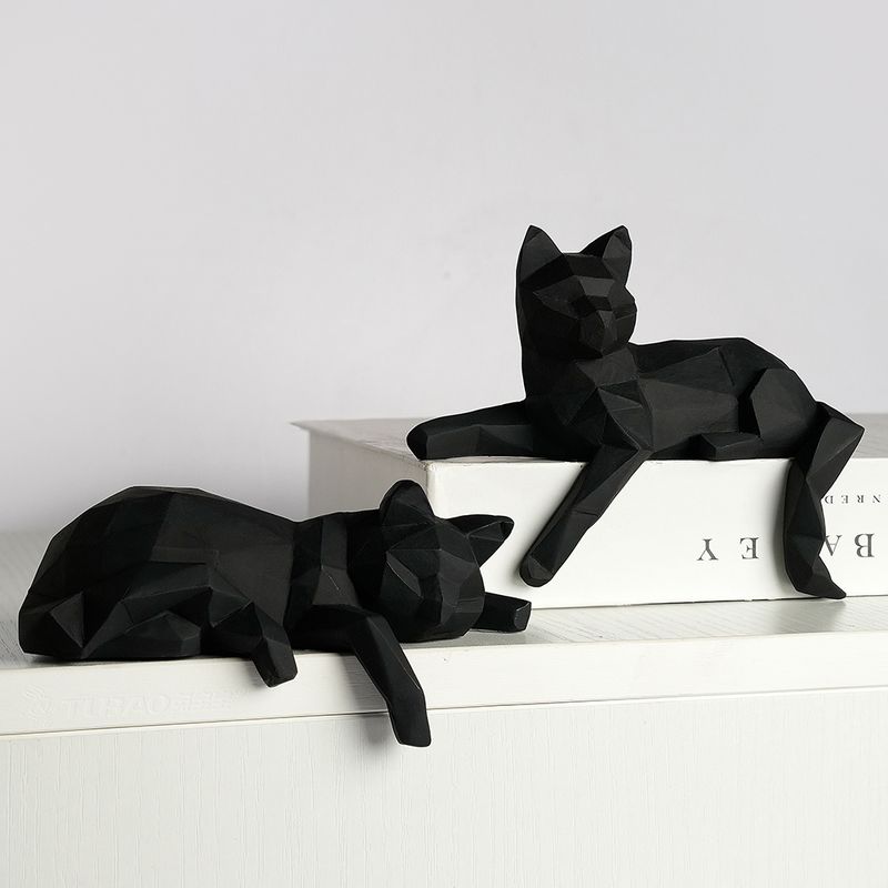1 Set of Cat Sculptures, Geometric Faceted Animal Sculptures, Resin Crafts, Living Room Home Design Creative Ornaments, Lazy Cat Statue Ornaments
