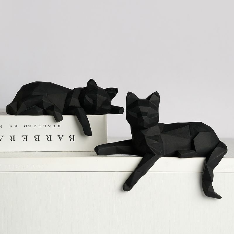 1 Set of Cat Sculptures, Geometric Faceted Animal Sculptures, Resin Crafts, Living Room Home Design Creative Ornaments, Lazy Cat Statue Ornaments