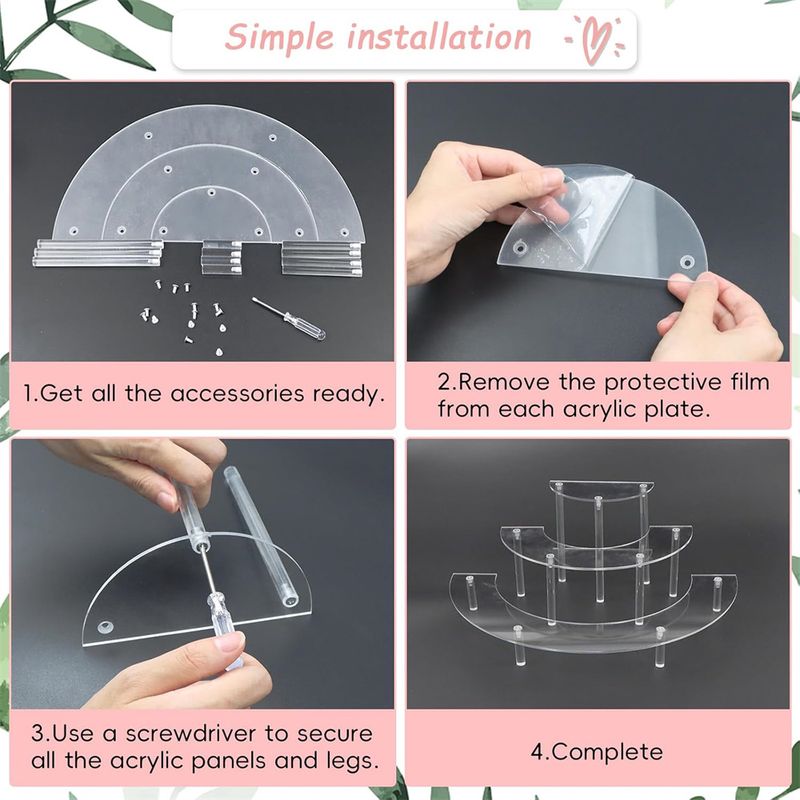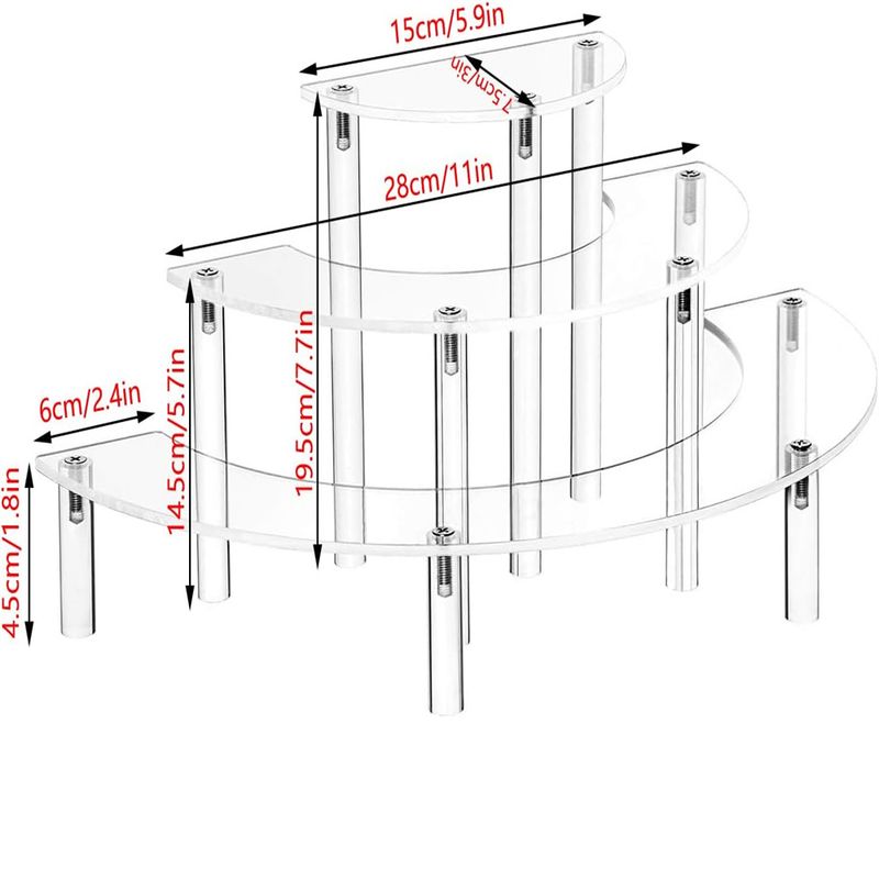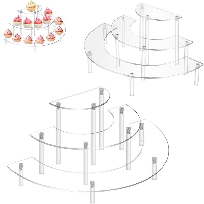 1 Set Premium Acrylic Display Stand 3 Tier Half Moon Dessert Cupcake Cosmetics Stand Perfect For Birthday Christmas Party