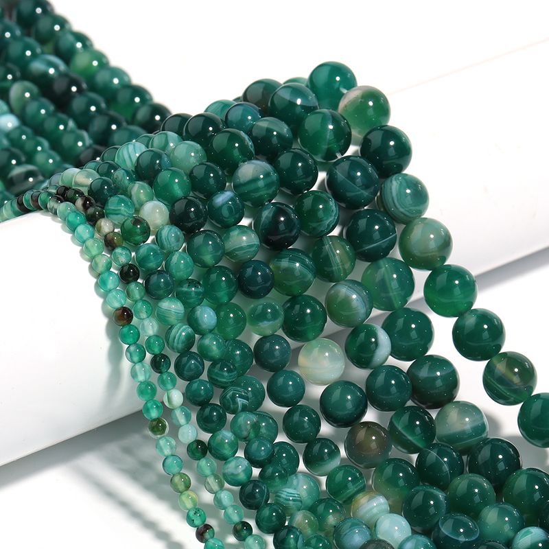 1 Strand 4/6/8/10/12mm Natural Stone Green Stripe Agate Beads Round Loose Bead For Jewelry Making DIY Bracelet Necklace Supplies
