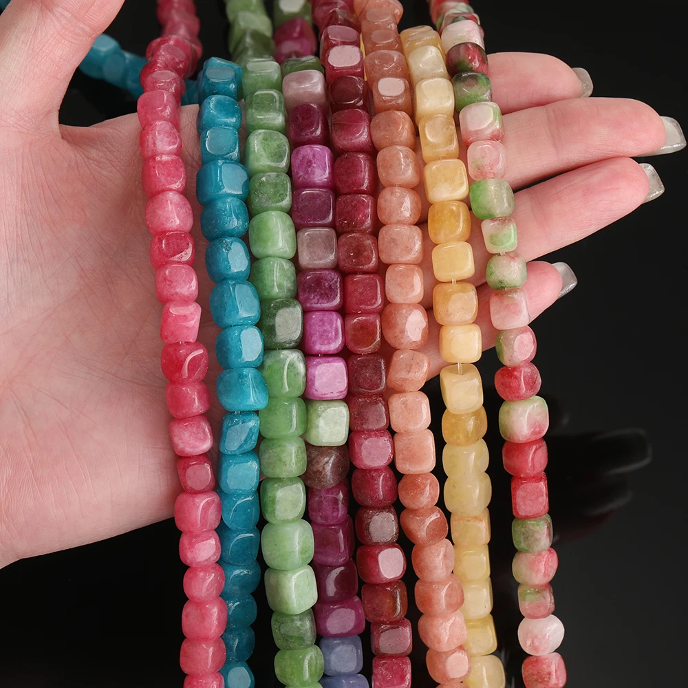 1 Strand 7.5 x 7.5mm Cube Natural Stone Agate Beads Spacer Loose Bead for Jewelry Making DIY Necklace Bracelet Accessories