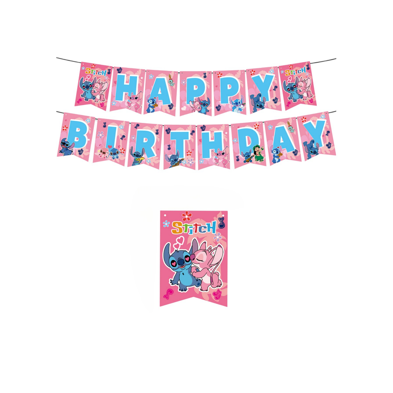 1/10/20/52pcs Pink blue Cute Lilo Stitch& Angel Birthday Party Decoration Tableware Cups Plates Balloon Banner Gift Favors