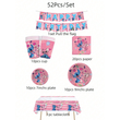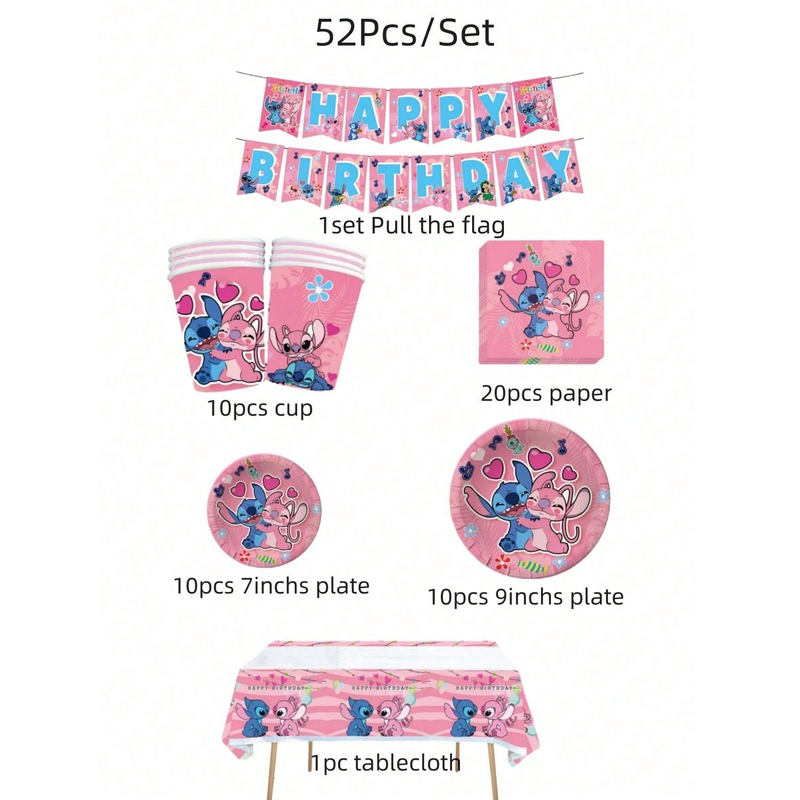 1/10/20/52pcs Pink blue Cute Lilo Stitch& Angel Birthday Party Decoration Tableware Cups Plates Balloon Banner Gift Favors